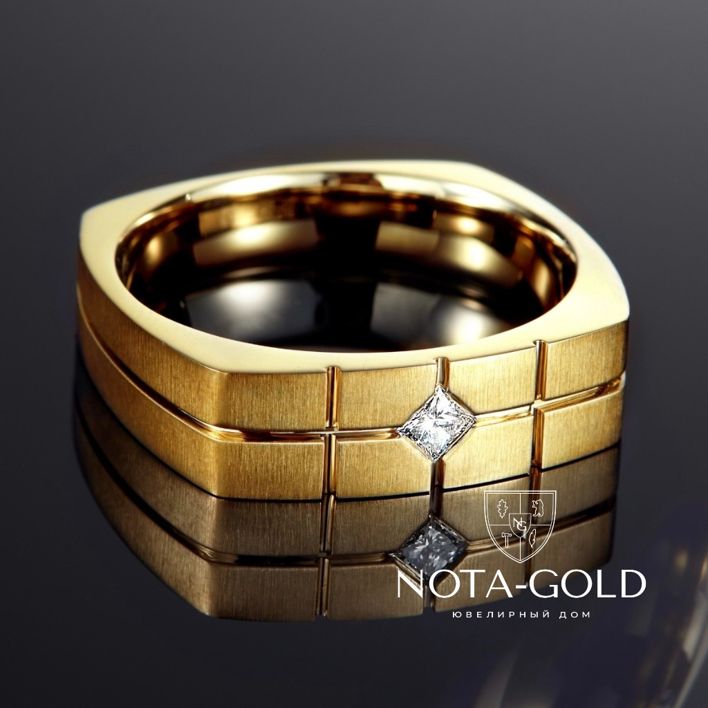Мужское кольцо из золота с квадратным бриллиантом (Вес 15 гр.)