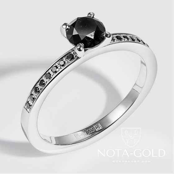 Помолвочное кольцо из белого золота с черными бриллиантами