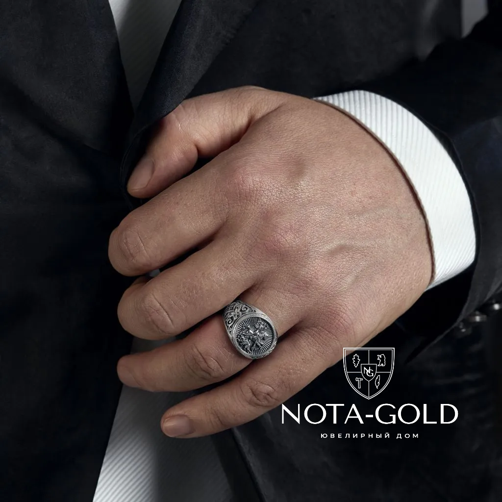 Еще один достойный вариант — кольцо печатка с орнаментом из платины. Строгая геометричность форм сочетается с витиеватыми узорами, выполненными нашими ювелирами с большой тщательностью.
