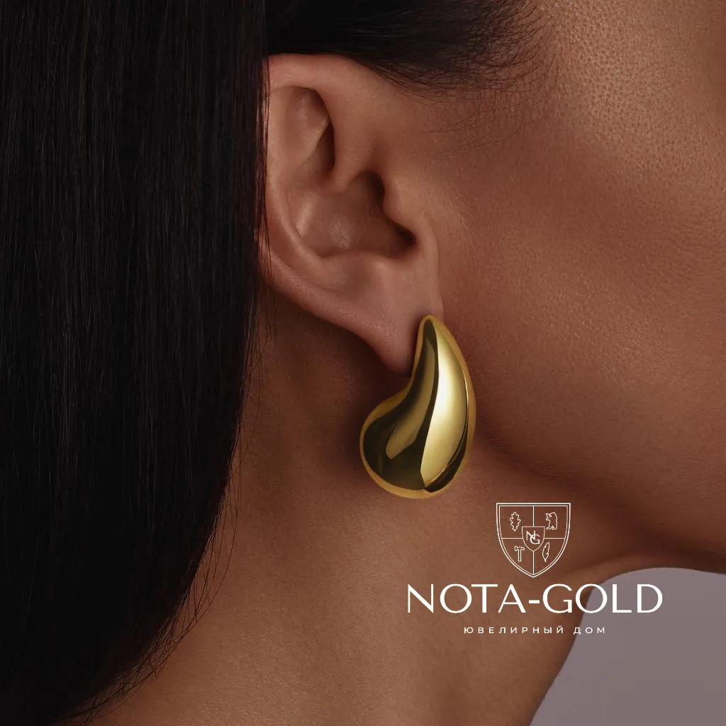 Золотые серьги пусеты крупные капли (Вес пары 23,5 гр.)