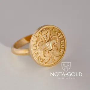 Мужская печатка - перстень с гербом и личными символами из белого золота с чернением (Вес: 21,3 гр.)