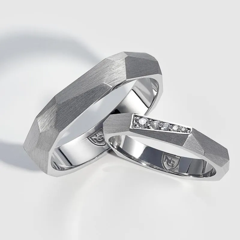 Граненые обручальные кольца из белого золота с бриллиантами