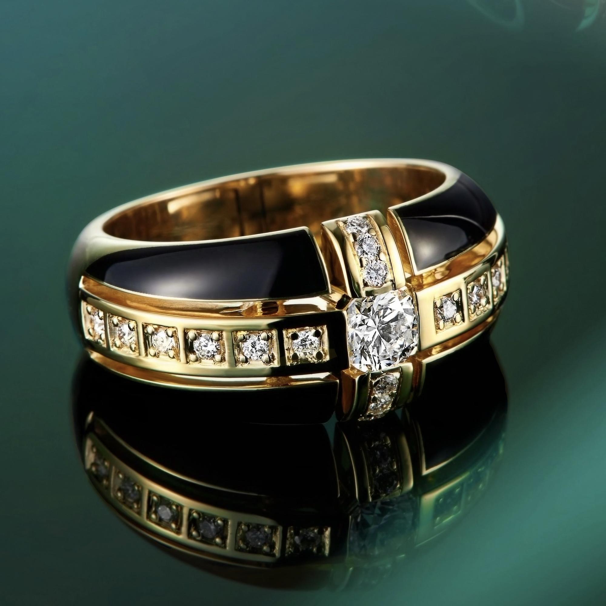 Изготовление мужского кольца из золота с бриллиантами и чёрной эмалью