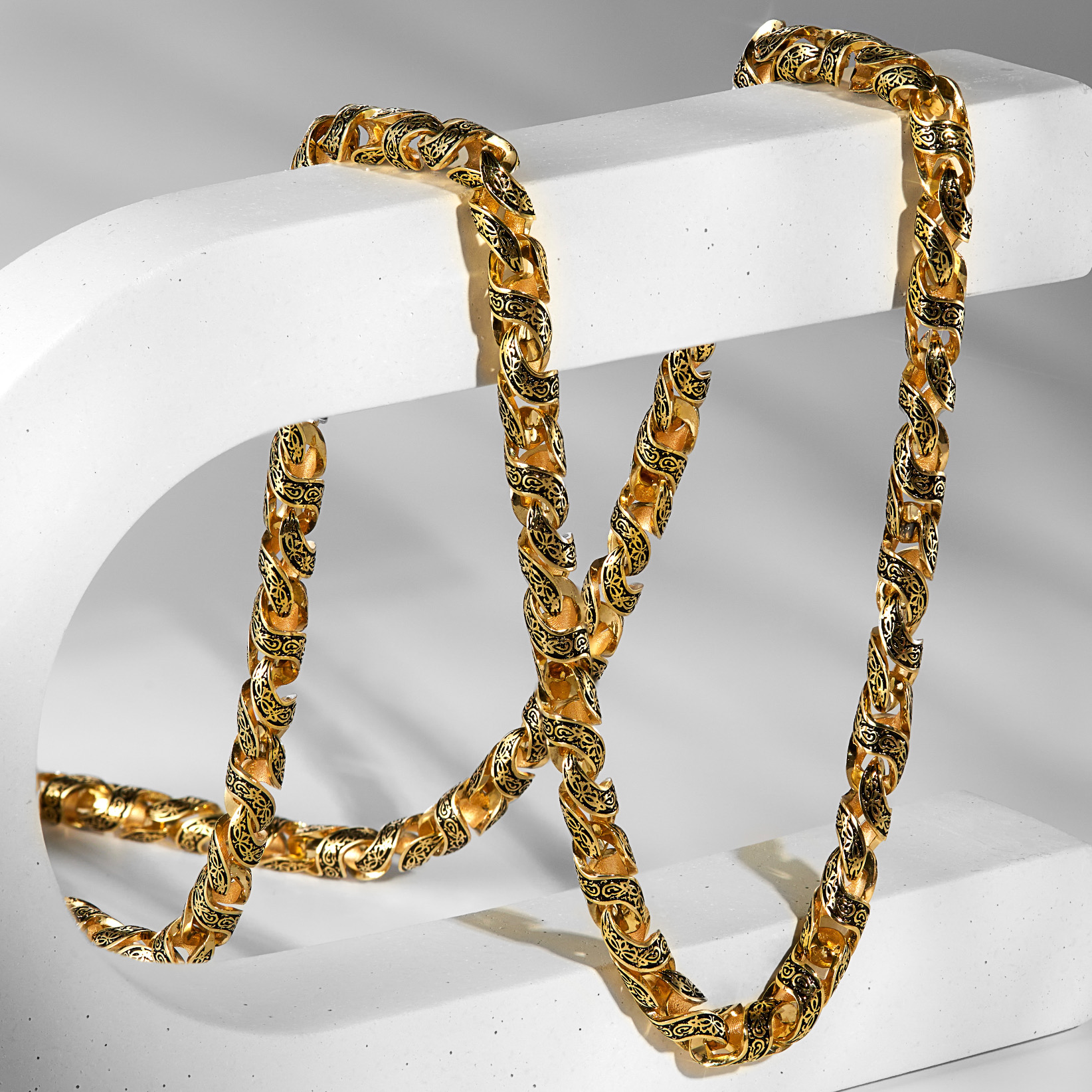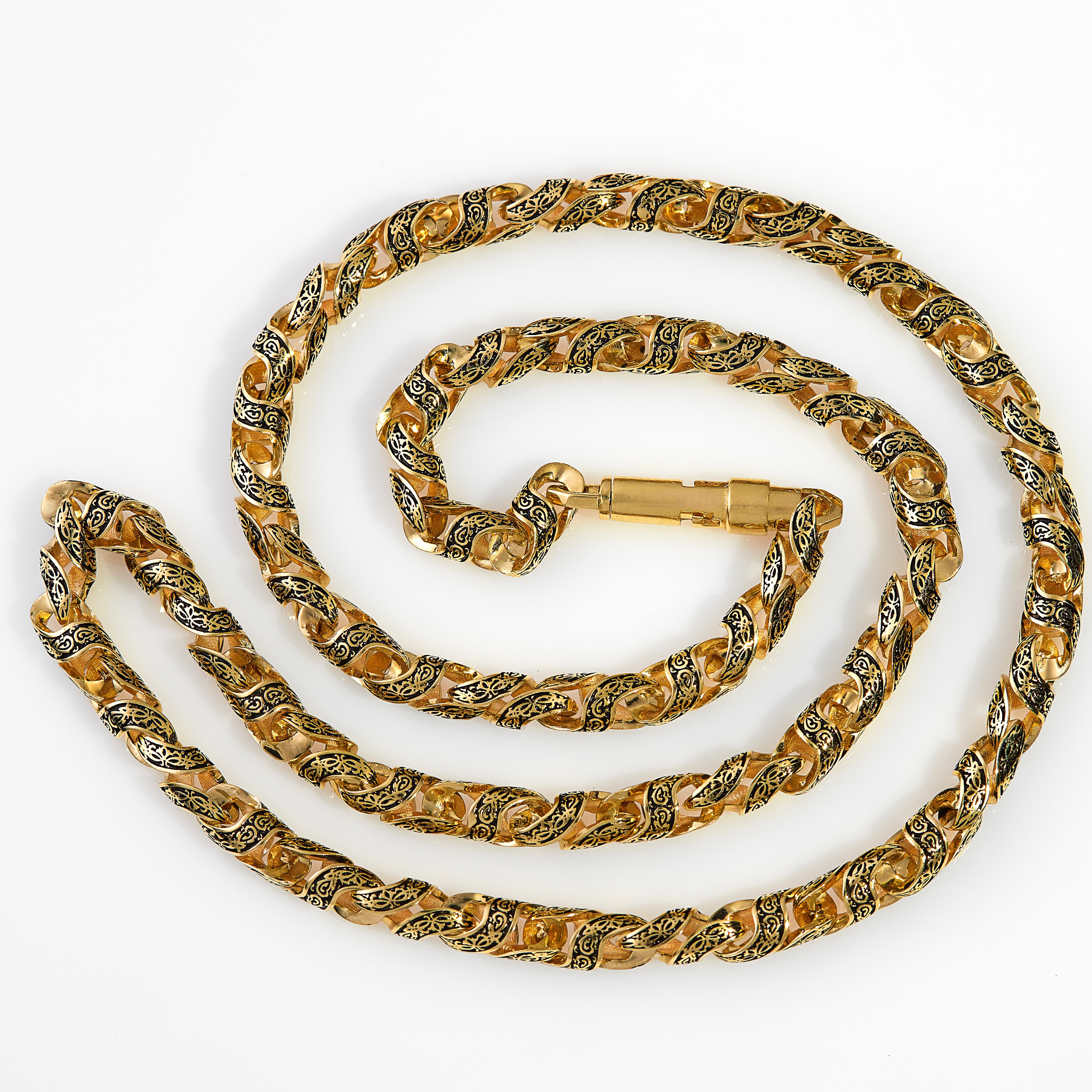 Изготовление цепочки Моцарт из желтого золота с чернением