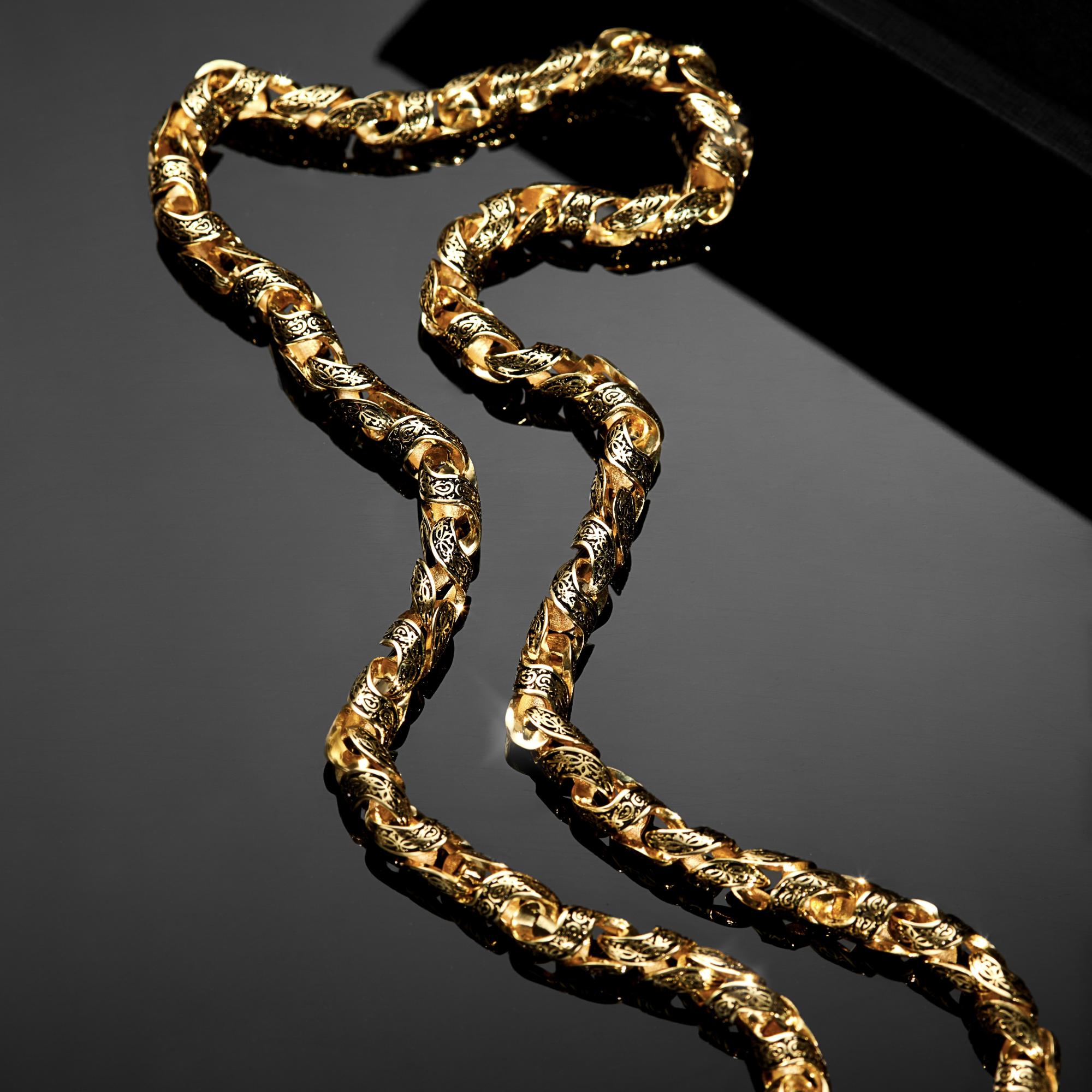 Цепочка выполнена из цельнолитых витых звеньев диаметром 5,9мм с контрастным узором, создающих эффект объемности и динамичности