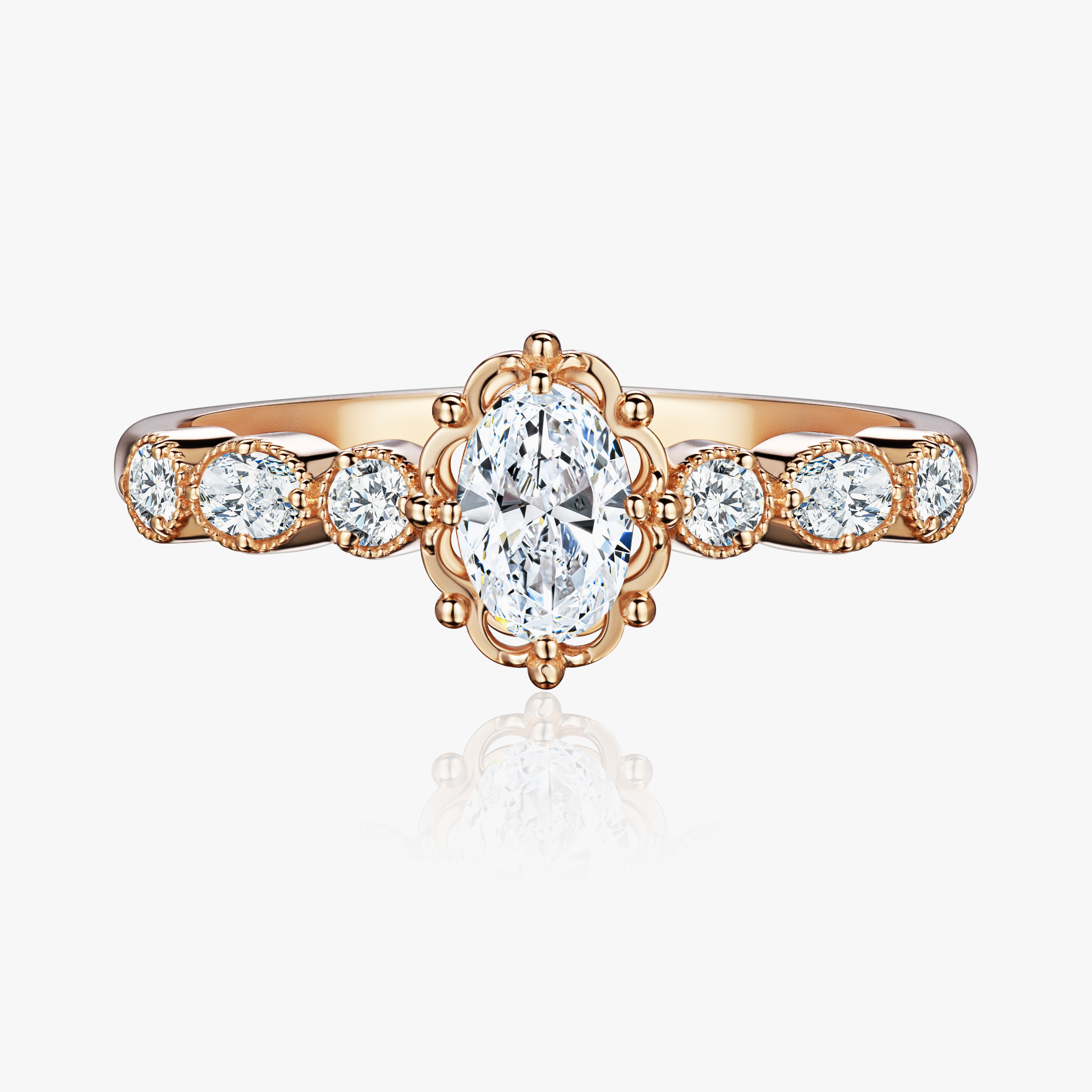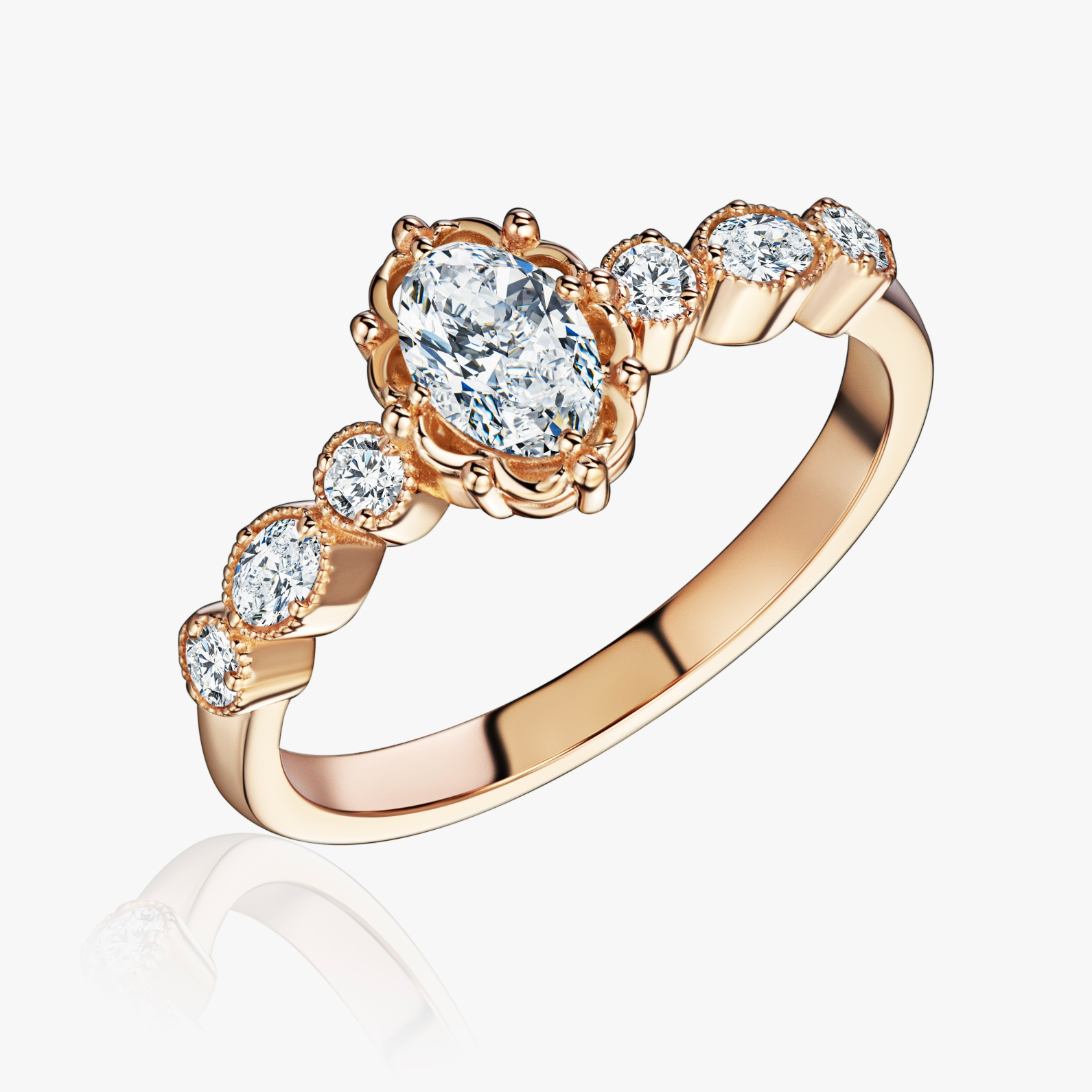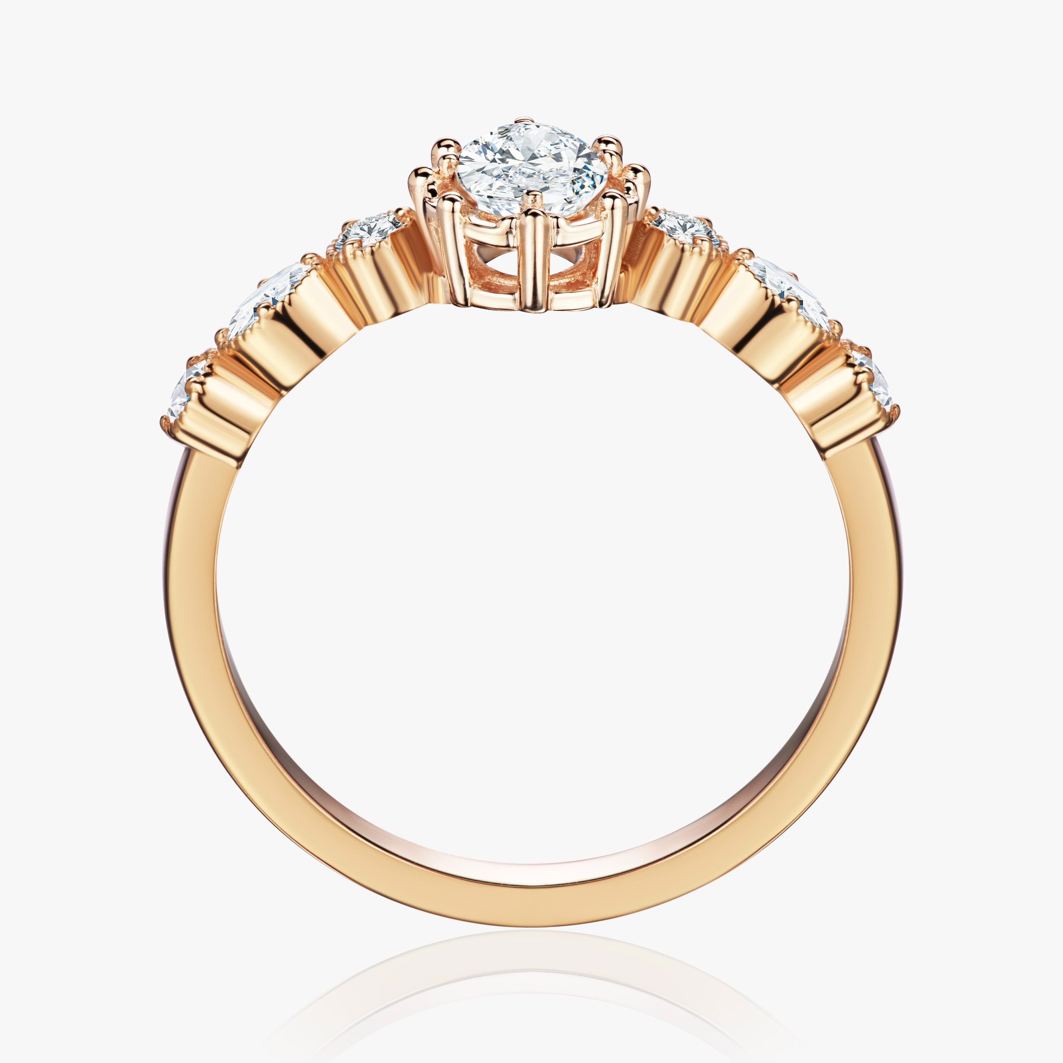 Изготовление женского золотое кольца с бриллиантами овальной и круглой огранки