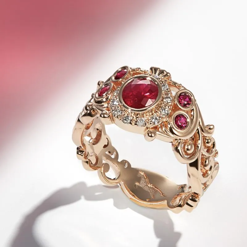 Изготовление женского кольца из красного золота с рубинами и бриллиантами