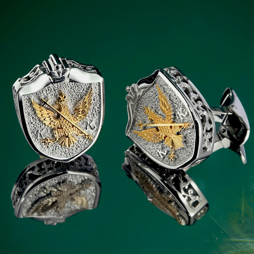 Изготовление запонок из белого и желтого золота с личным гербом и инициалами