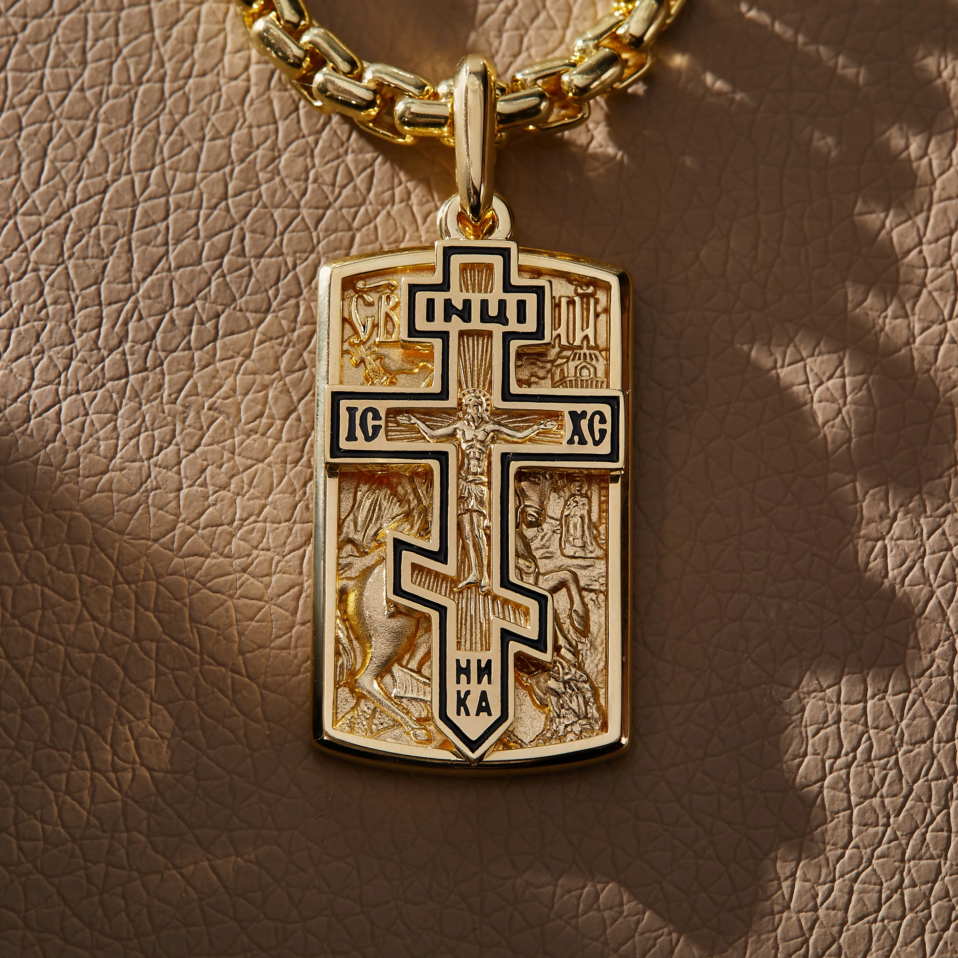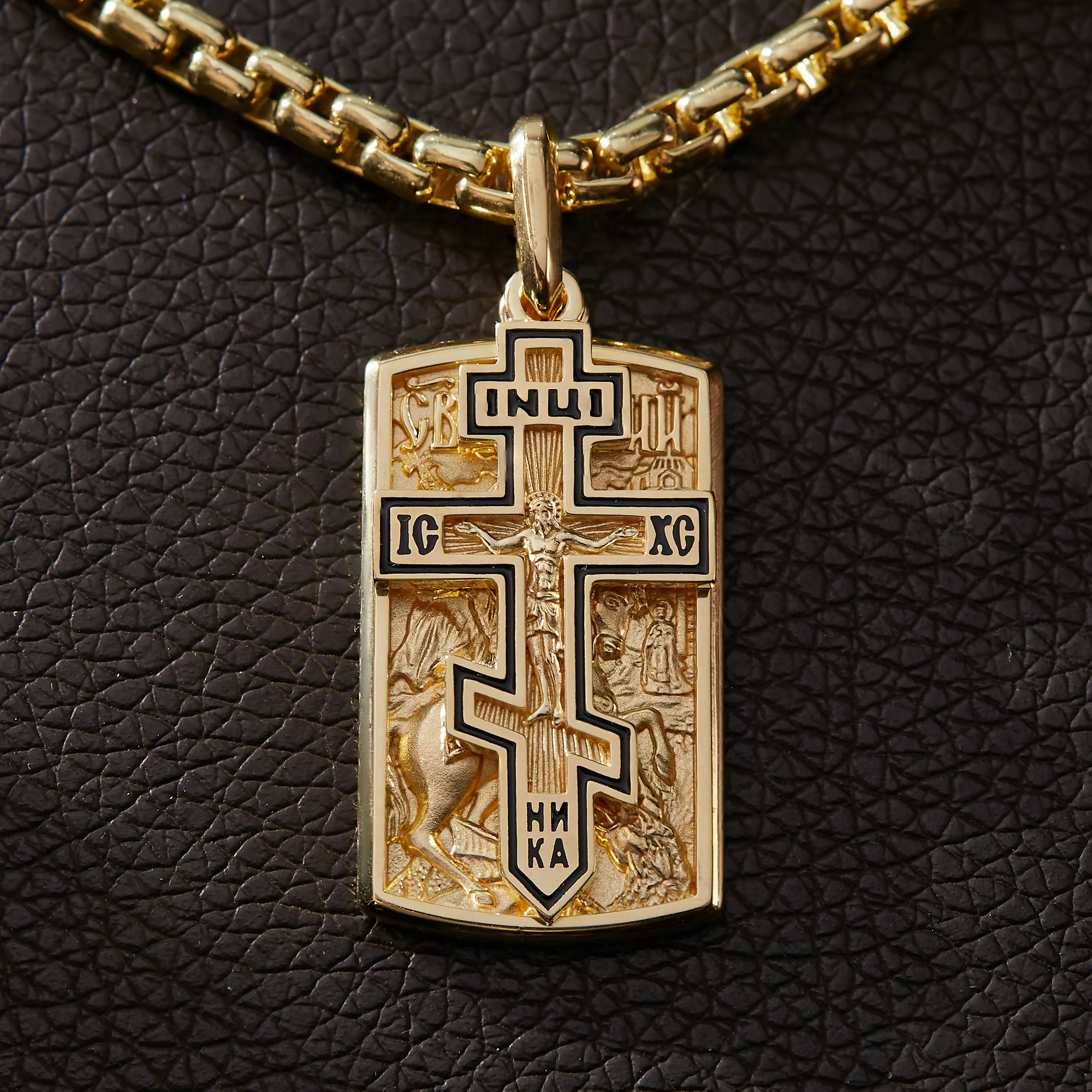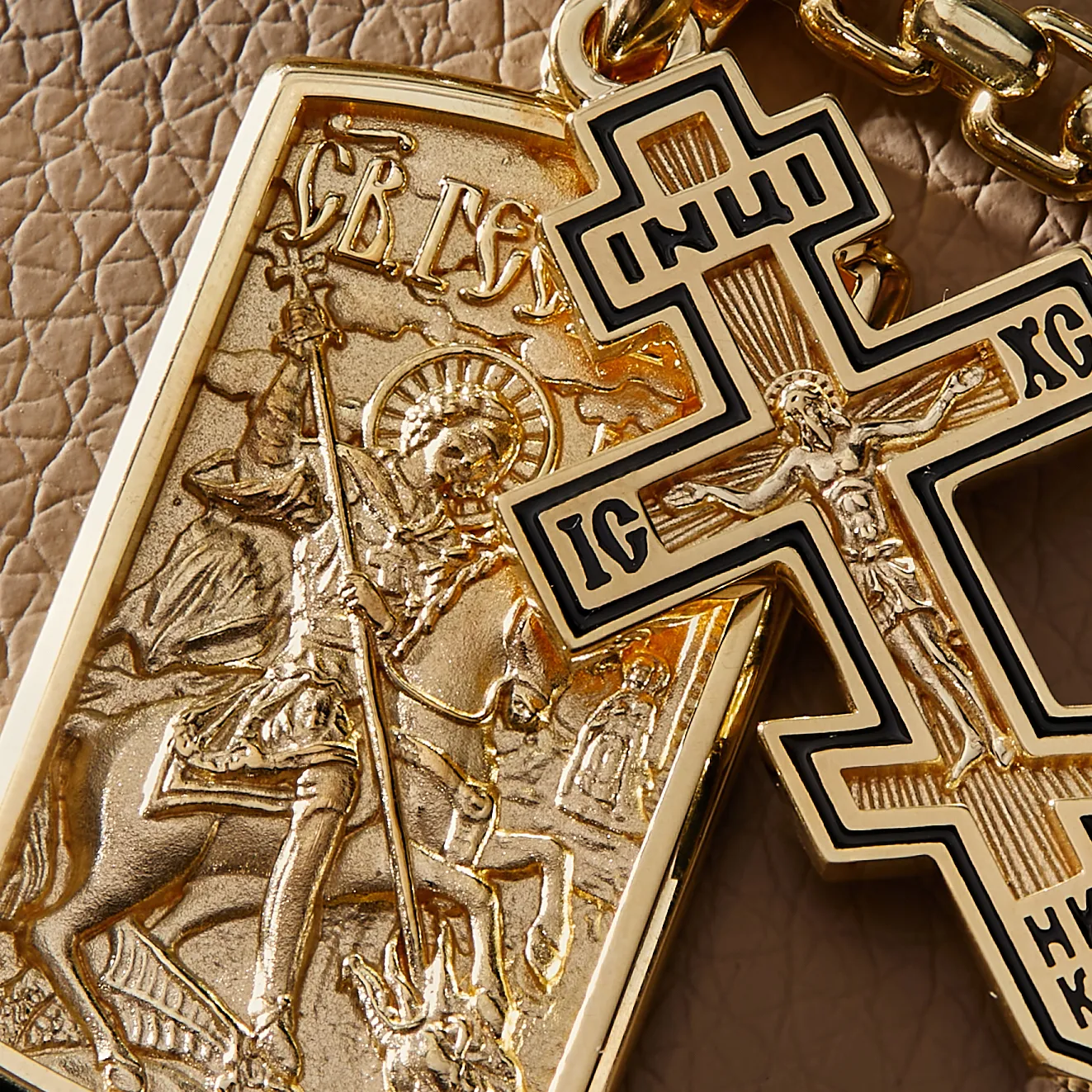 Золотой жетон св Георгий с крестиком на цепочке