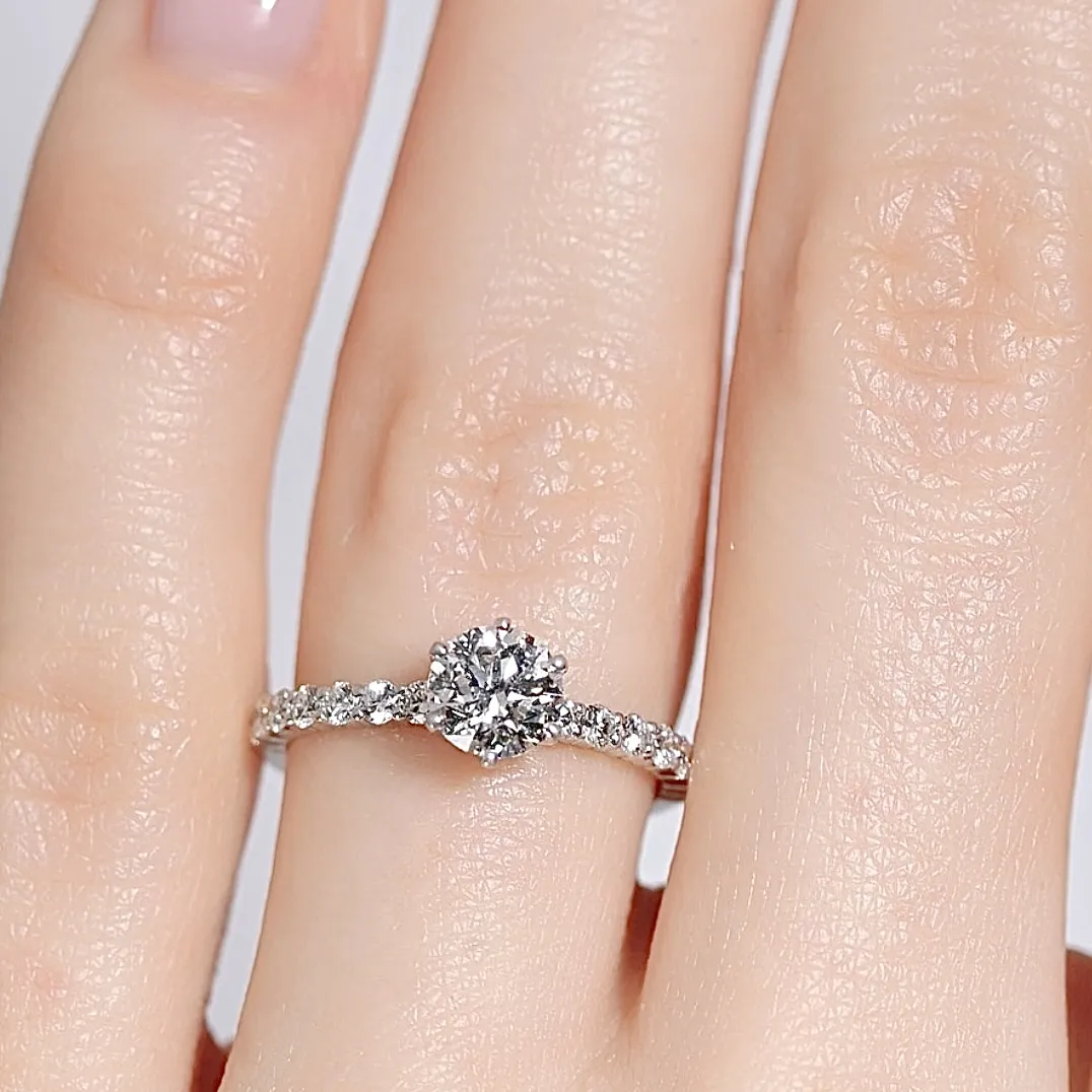 Сияние и блеск дорожки из четырнадцати небольших камней как дополнение к основному бриллианту