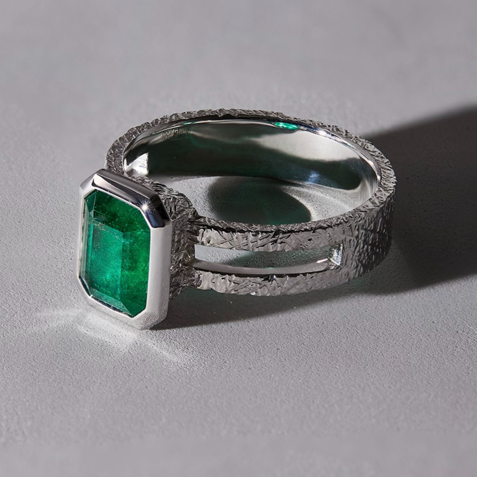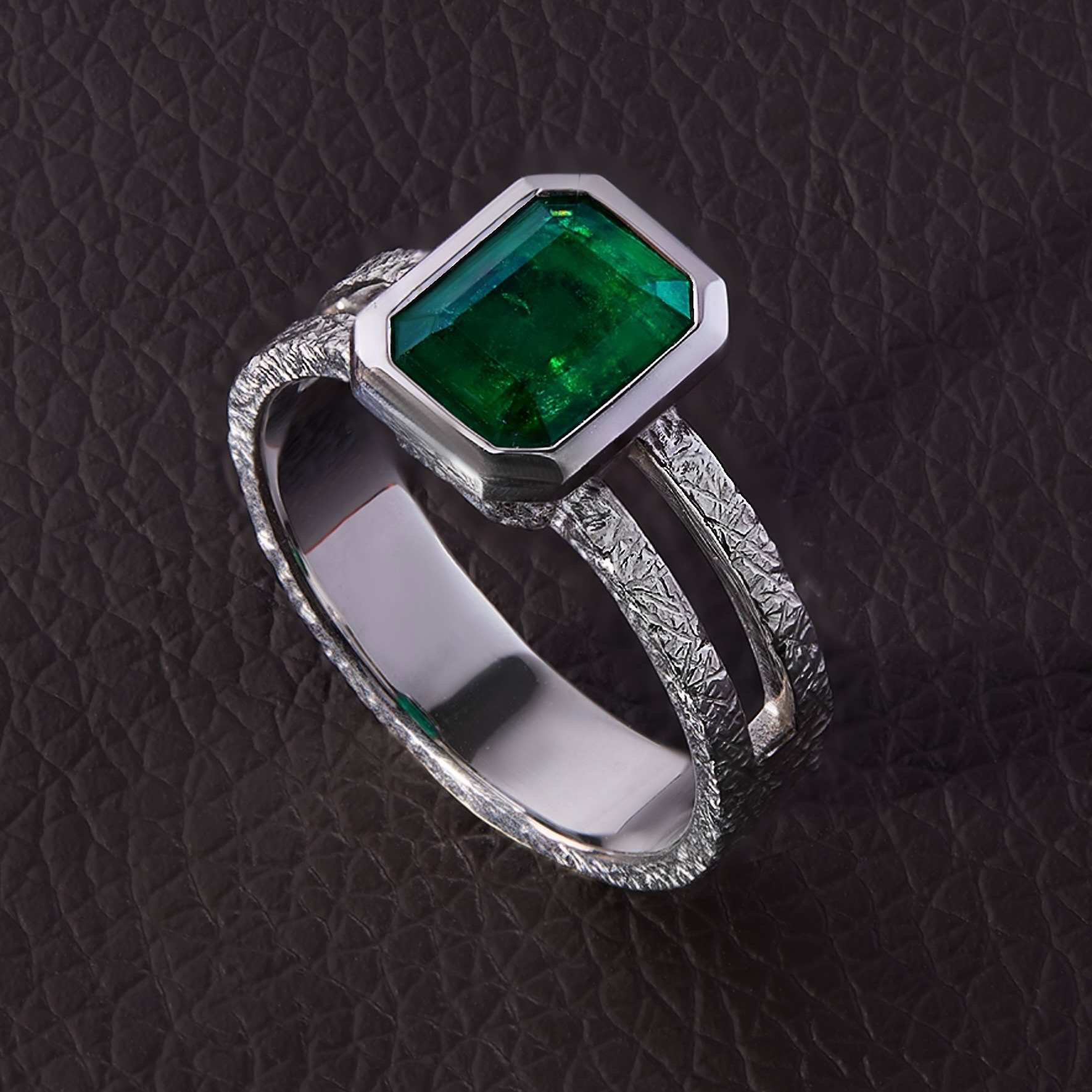 Изготовление мужского кольца из белого золота с изумрудом