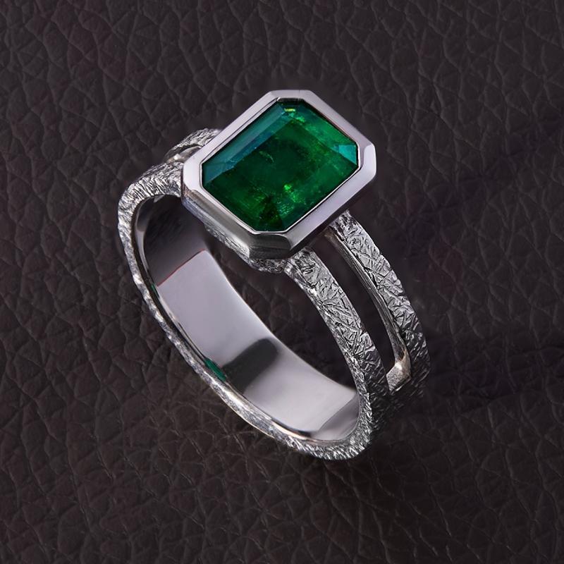 Мужское кольцо из белого золота с изумрудом