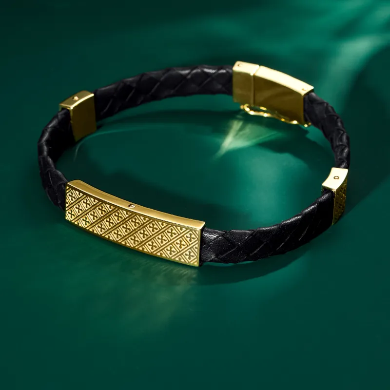 Изготовление мужского браслета из кожи со вставками из желтого золота 585 пробы