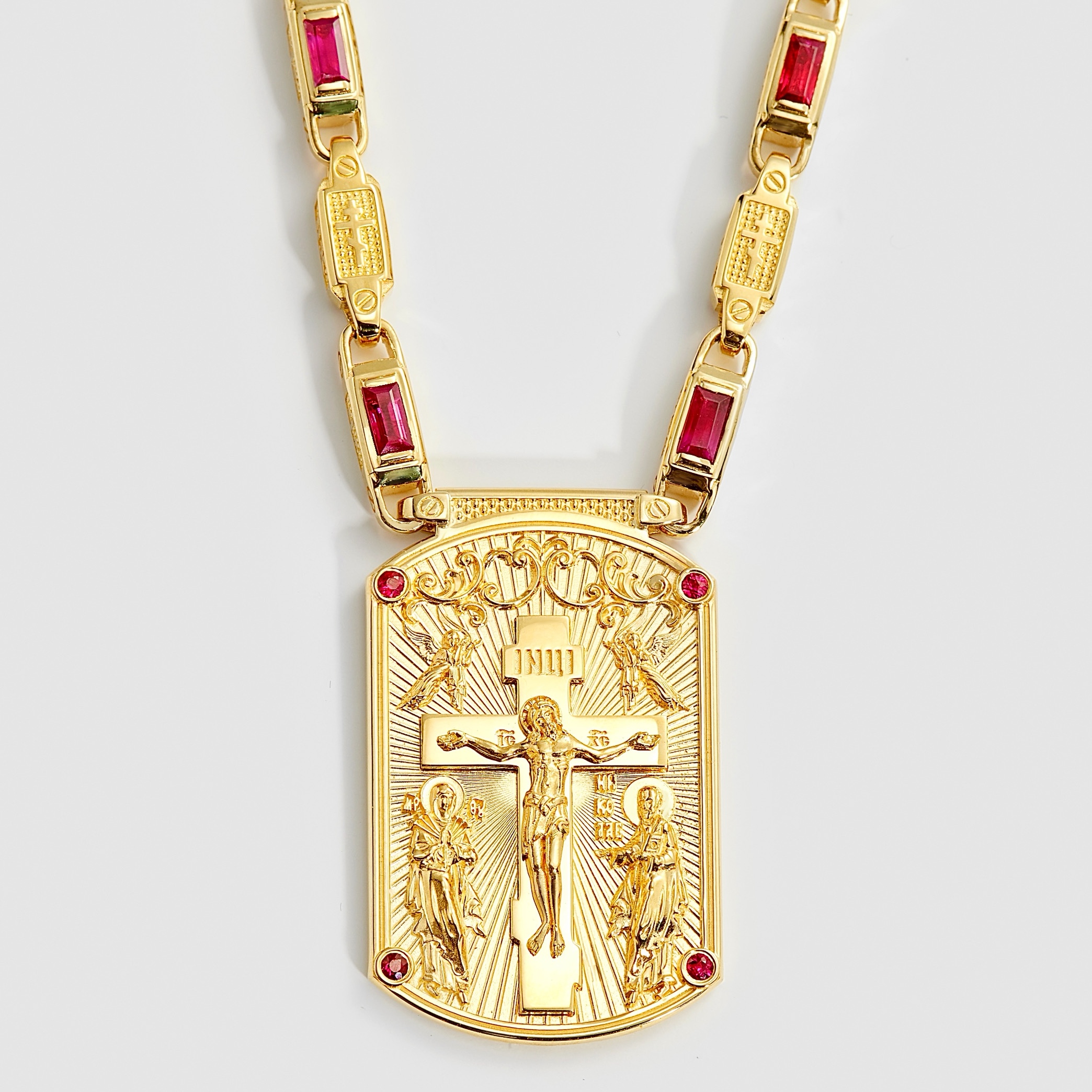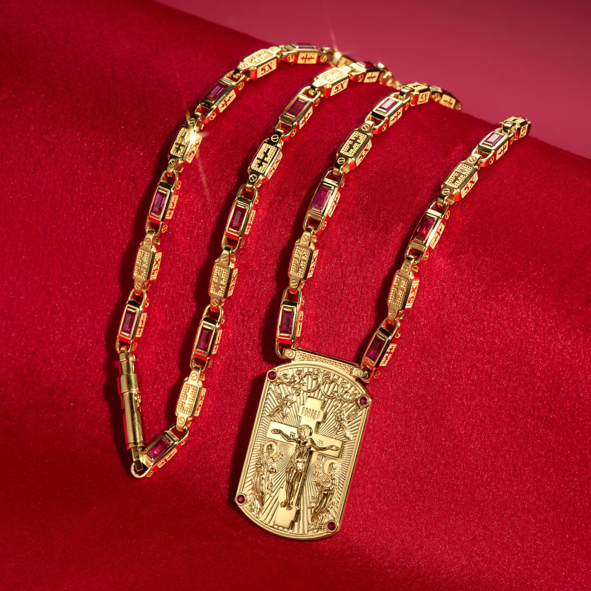 Изготовление нательной иконки жетона из красного золота с рубинами