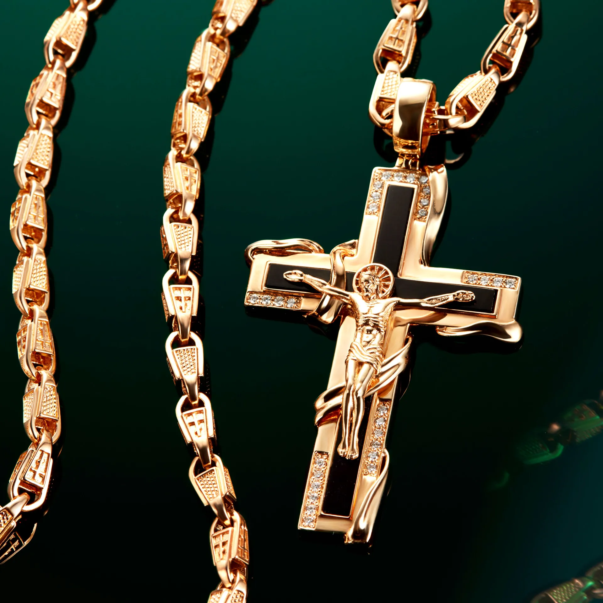 Золотая цепочка из цельнолитых звеньев с православной символикой