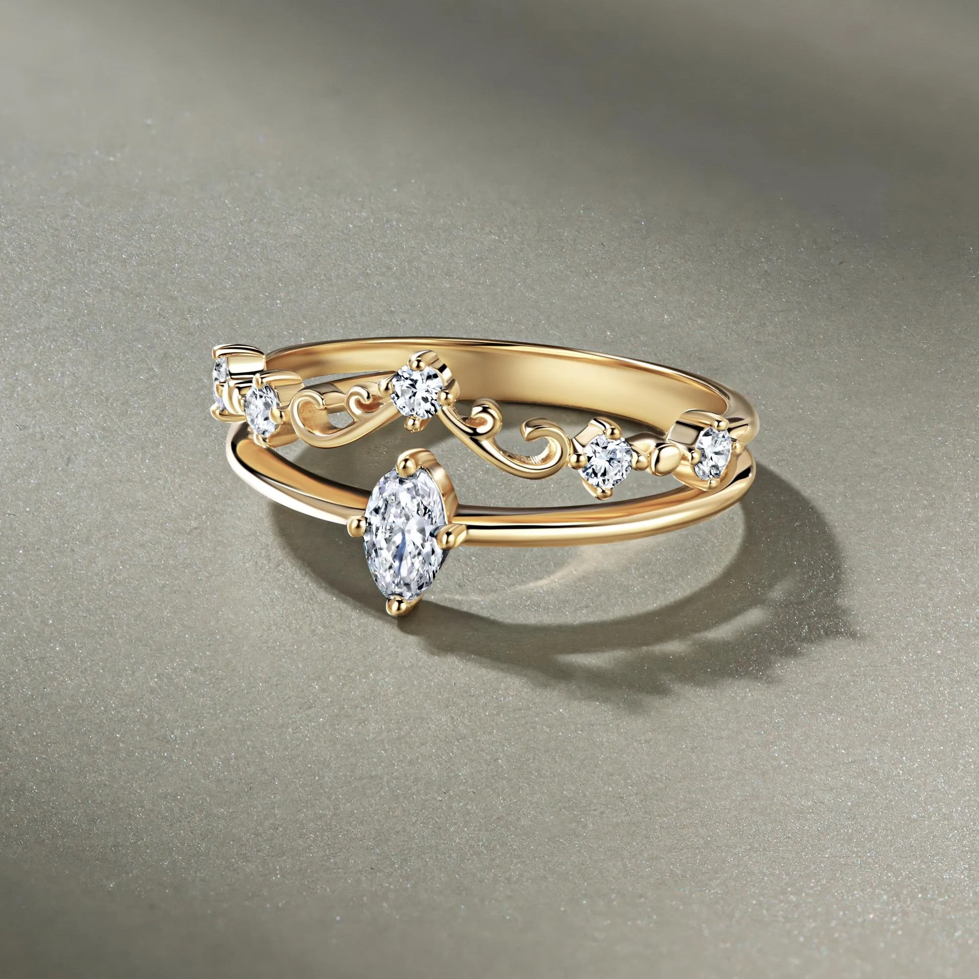 Лёгкое, утончённое и необычайно нежное двойное кольцо из желтого золота