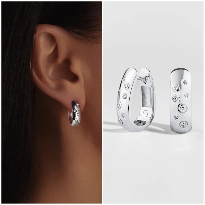Широкие серьги из белого золота с бриллиантами разных размеров