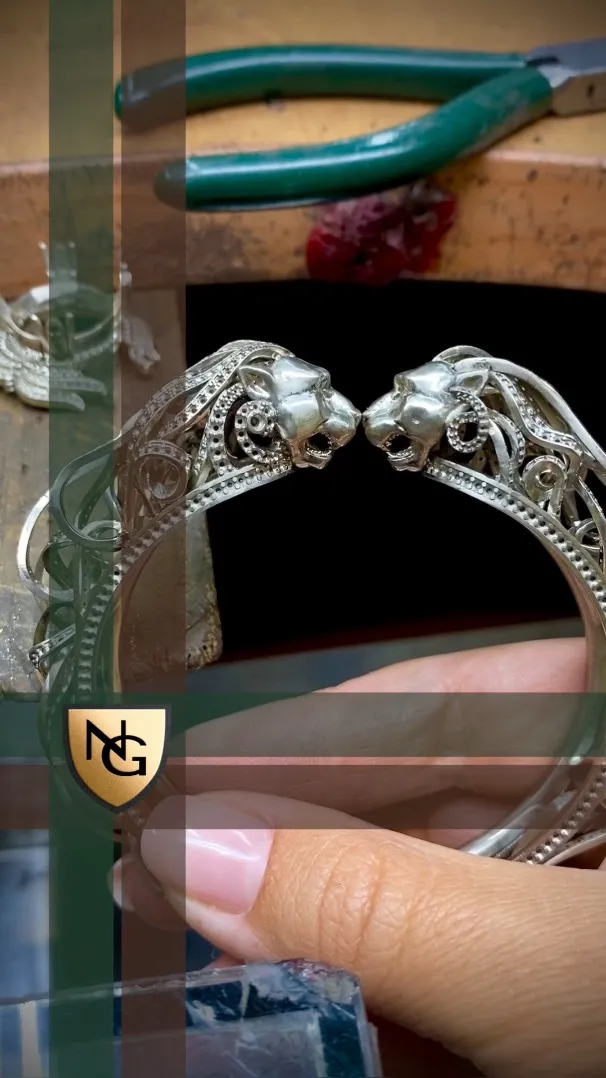 Изготовление браслета со львами из белого золота с бриллиантами