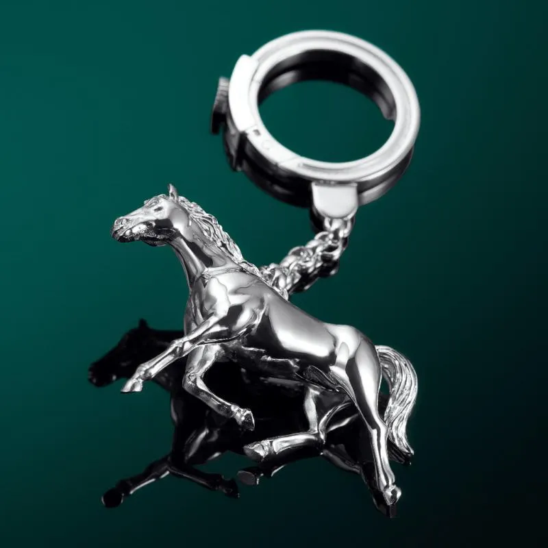 Изготовление брелока для ключей Рысак из серебра с гравировкой