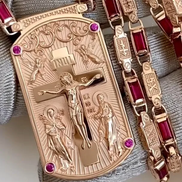 Изготовление золотого православного жетона на цепочке с драгоценными камнями