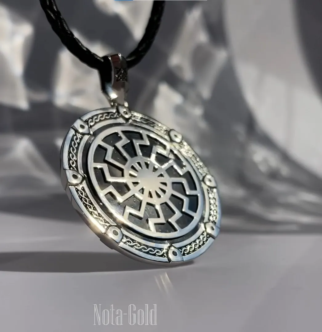 Изготовление славянского медальона-подвески Звезда Руси из белого золота с чёрной эмалью