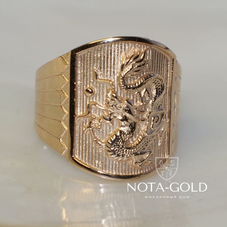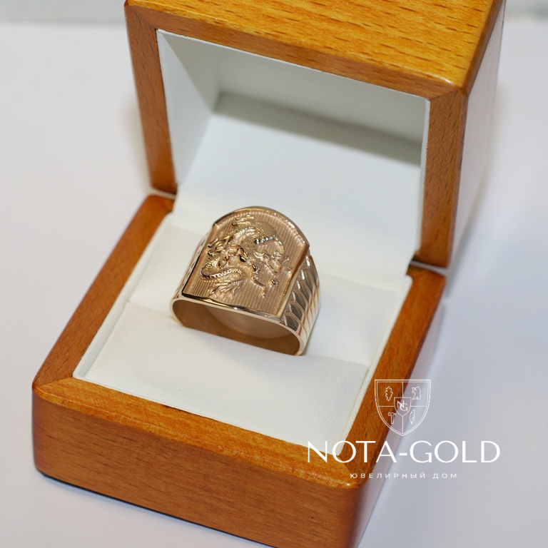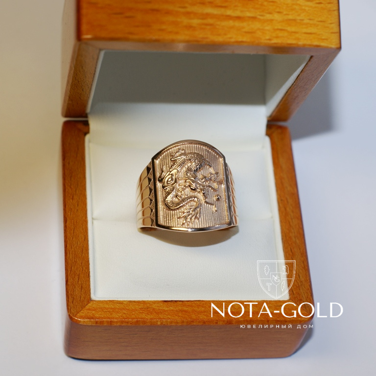 Печатка Дракон на заказ (Вес: 12 гр.) Авторская эксклюзивная ювелирная работа - Печатка дракон (в виде дракона) на заказ. Печатка дракон (в виде дракона) на заказ изготовлена в виде мужского кольца с изображением дракона из красного золота 585 пробы. Печатка дракон (в виде дракона) может быть изготовлена как из золота, так и из серебра.