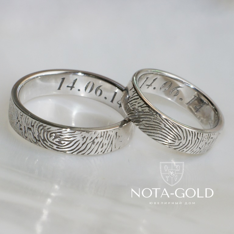 Обручальные кольца с отпечатком пальца с чернением и гравировкой на заказ (Вес пары: 15гр.)
