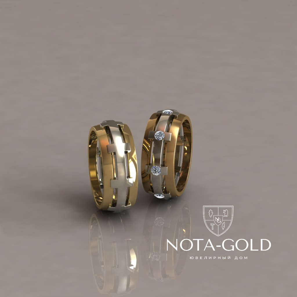 Двухцветные эксклюзивные обручальные кольца с бриллиантами на заказ (Вес пары: 11 гр.)