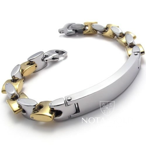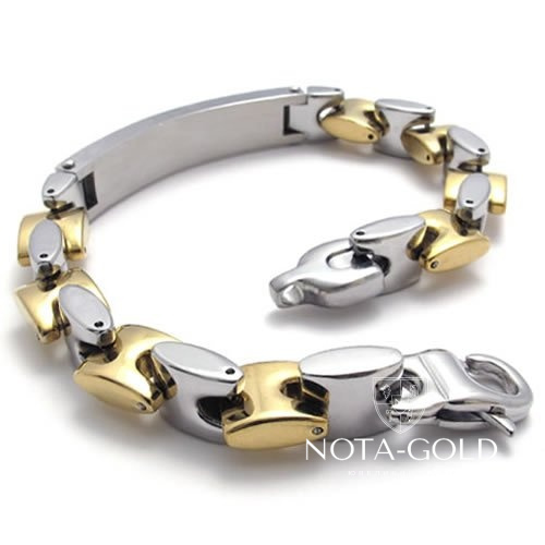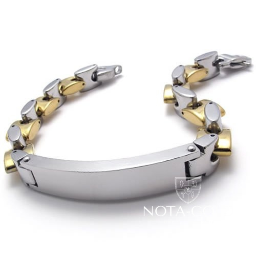Мужской двухцветный браслет с пластиной для гравировки на заказ (Вес 60 гр.)