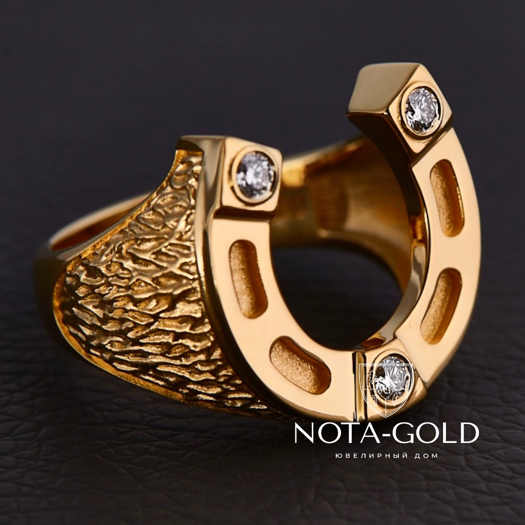 Печатка на заказ подкова (Вес: 13 гр.) Авторская эксклюзивная ювелирная работа - Печатка на заказ "Подкова", сделанная по эскизам Ювелира. (ручная работа, жёлтое золото, белые бриллианты, золото 585 пробы, 3 бриллианта - 0,30 карат; золото - 13 грамм; суммарный вес 13,6 грамм.). Эксклюзивная печатка подкова на заказ (печатка в виде подковы) может быть выполнен из золота (белого золота, жёлтого золота, красного золота) или серебра, материал и драгоценные камни (чёрные и белые бриллианты или фианиты) могут быть как Мастерской так и Заказчика.