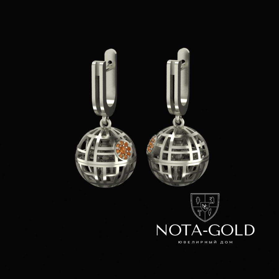 Серьги из золота Боевая станция Звезда Смерти Звездные Войны (Вес: 10 гр.)
