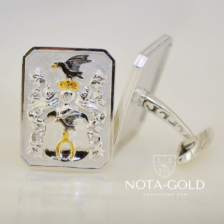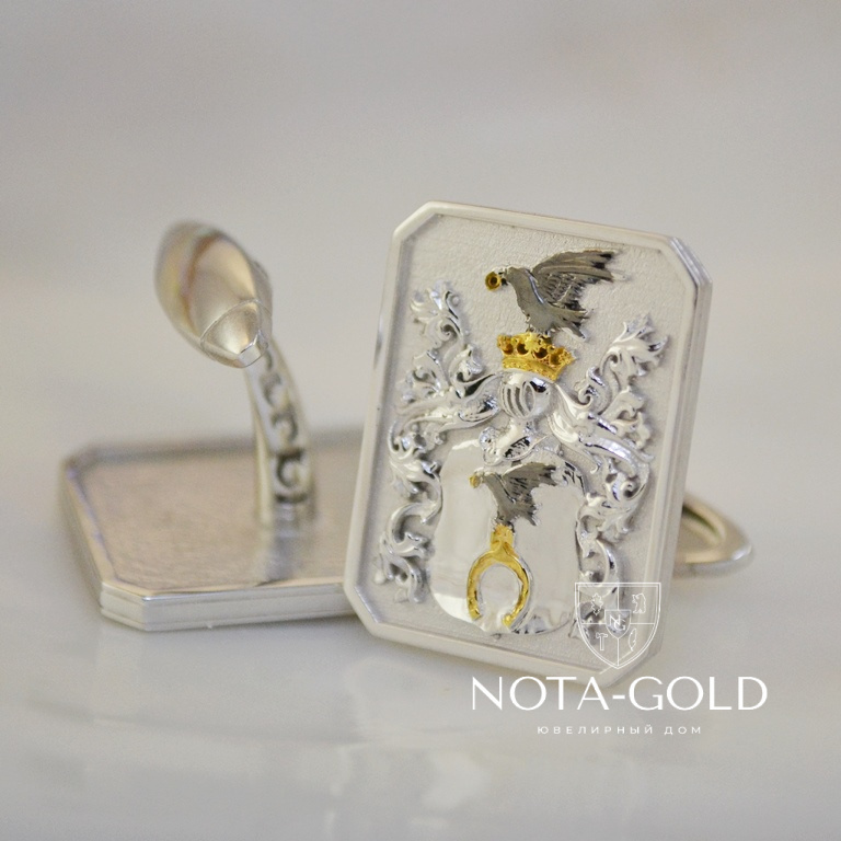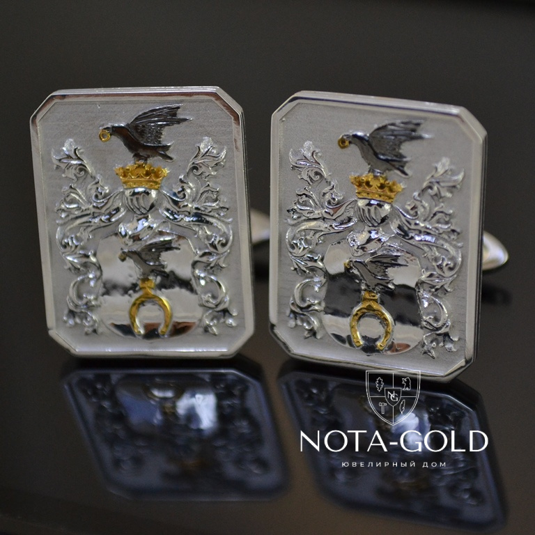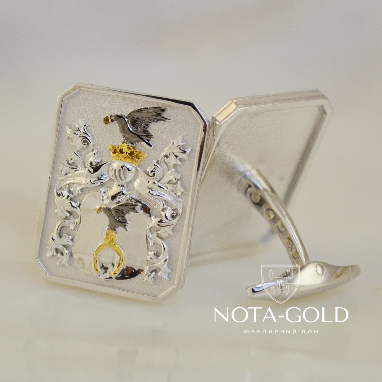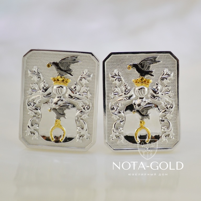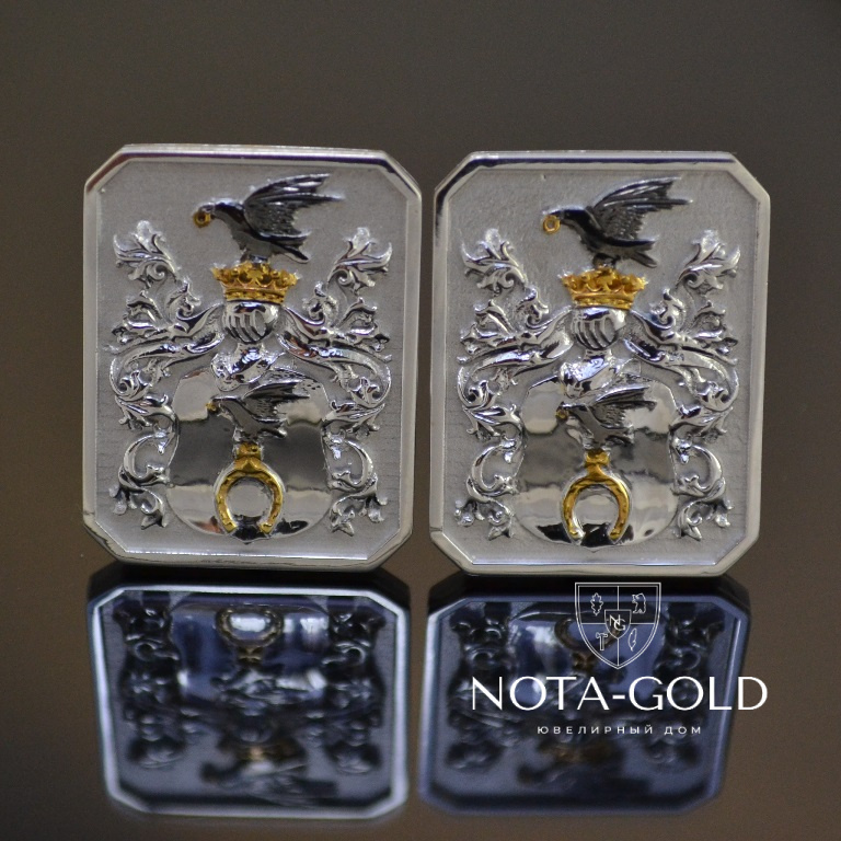 Запонки с фамильным гербом из белого золота на заказ (Вес пары: 15 гр.)