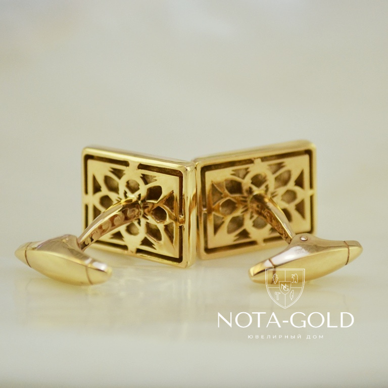 Запонки из красного золота с чёрной эмалью и инициалами (Вес пары: 15 гр.)