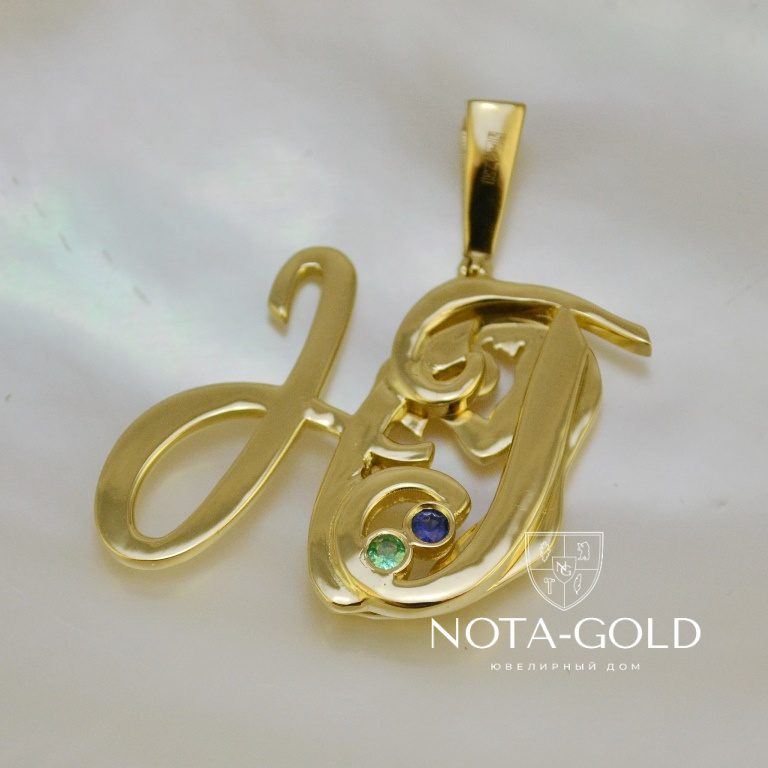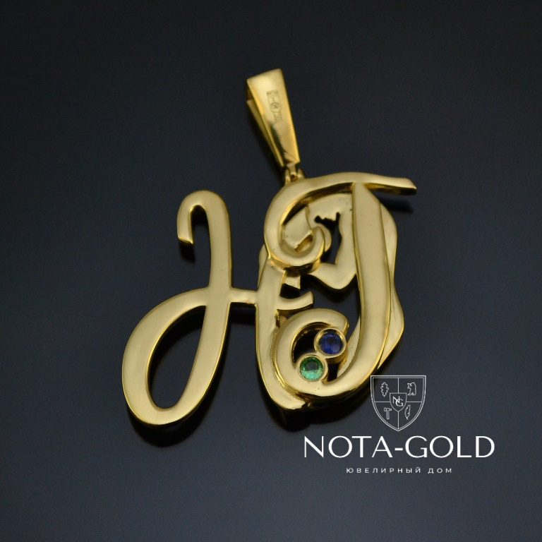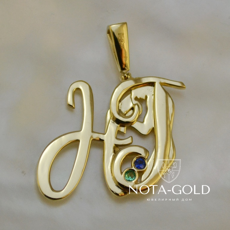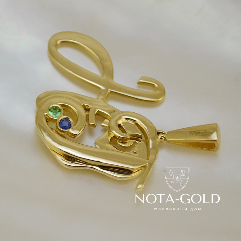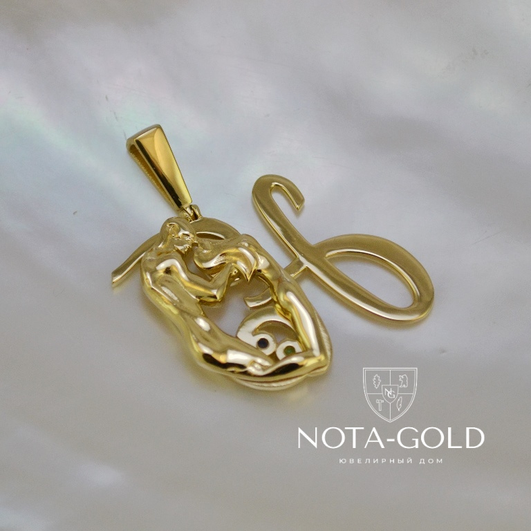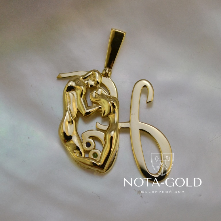 Золотая подвеска с инициалами и фигурками мужчины и женщины (Вес: 9 гр.)
