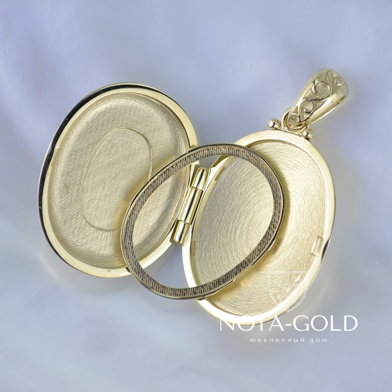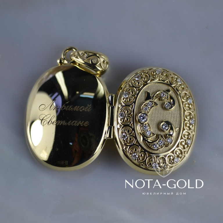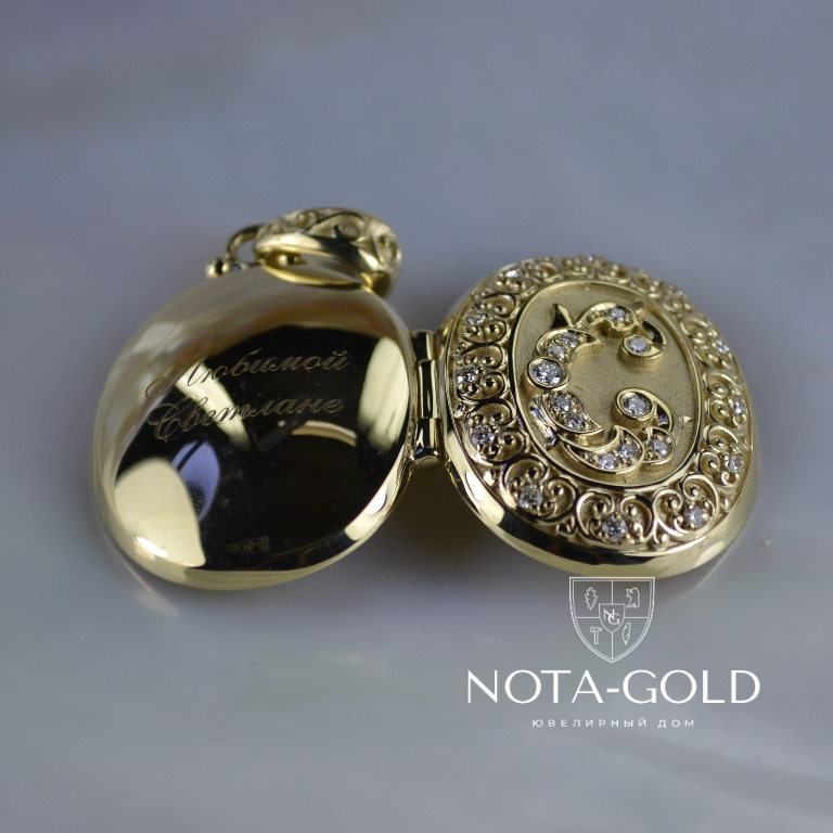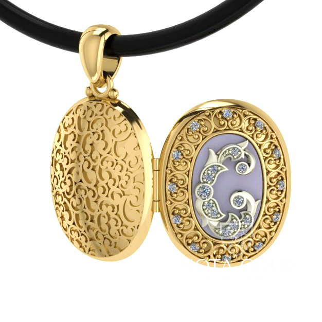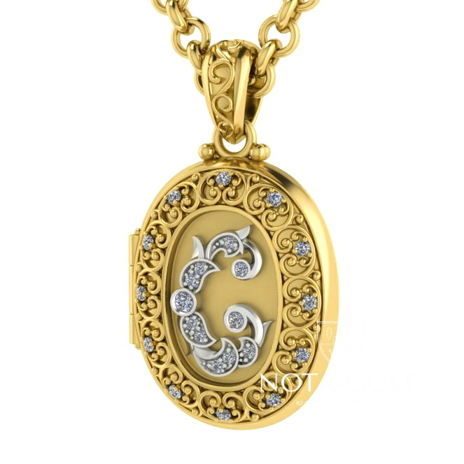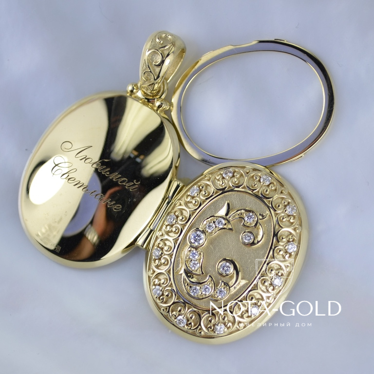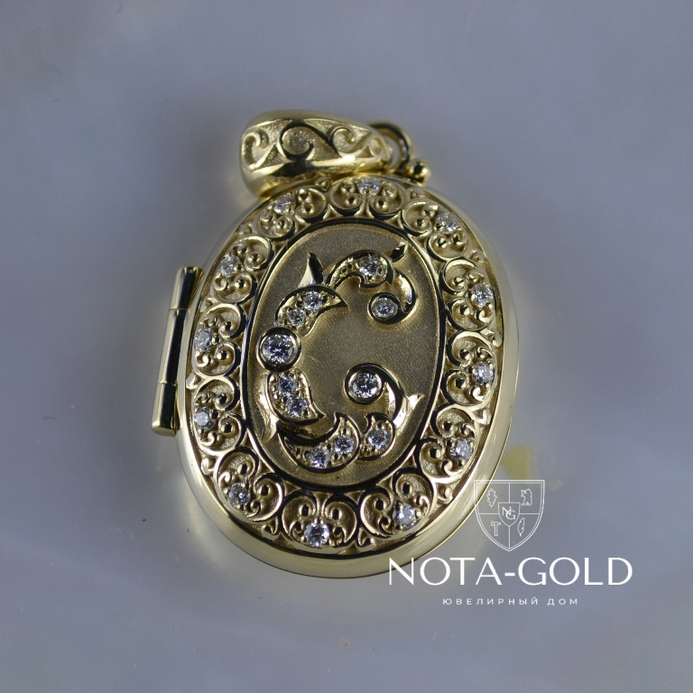 Медальон с инициалами и бриллиантами из золота открывающийся под фотографии (Вес: 9 гр.)