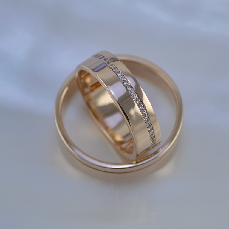 Обручальные кольца из красного золота с дорожкой из бриллиантов (Вес пары: 17 гр.)