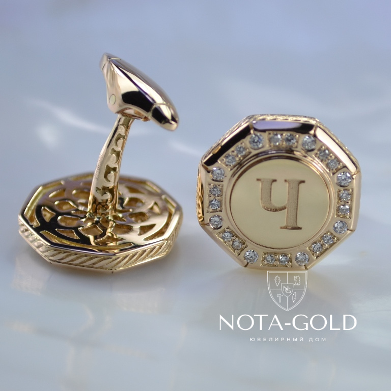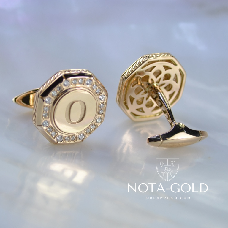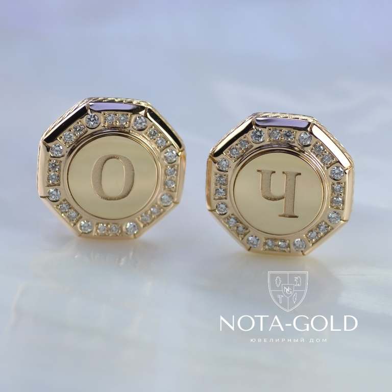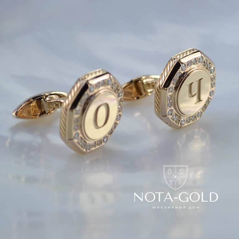Именные запонки из красного золота с бриллиантами (Вес: 13 гр.)