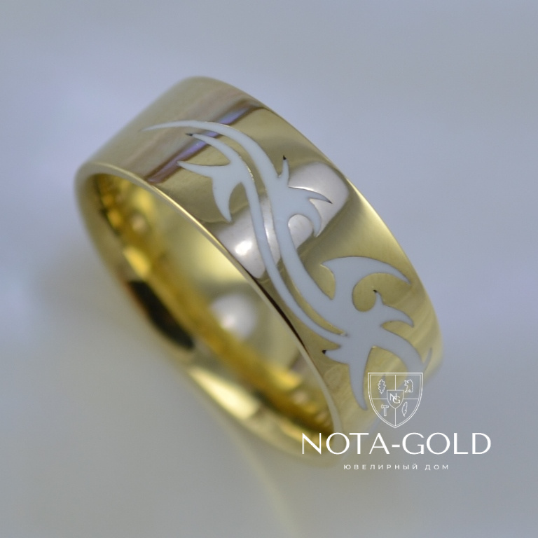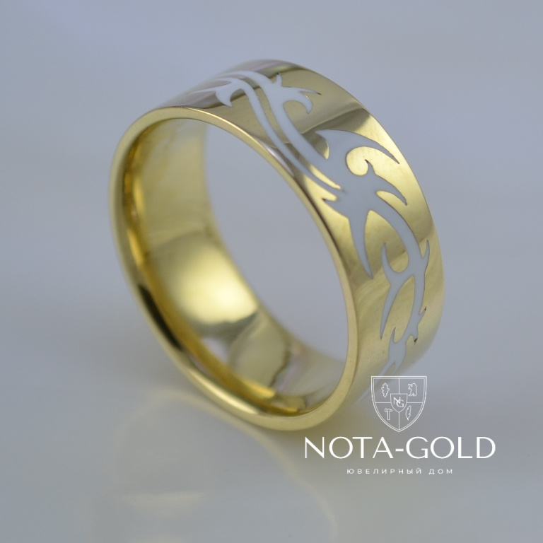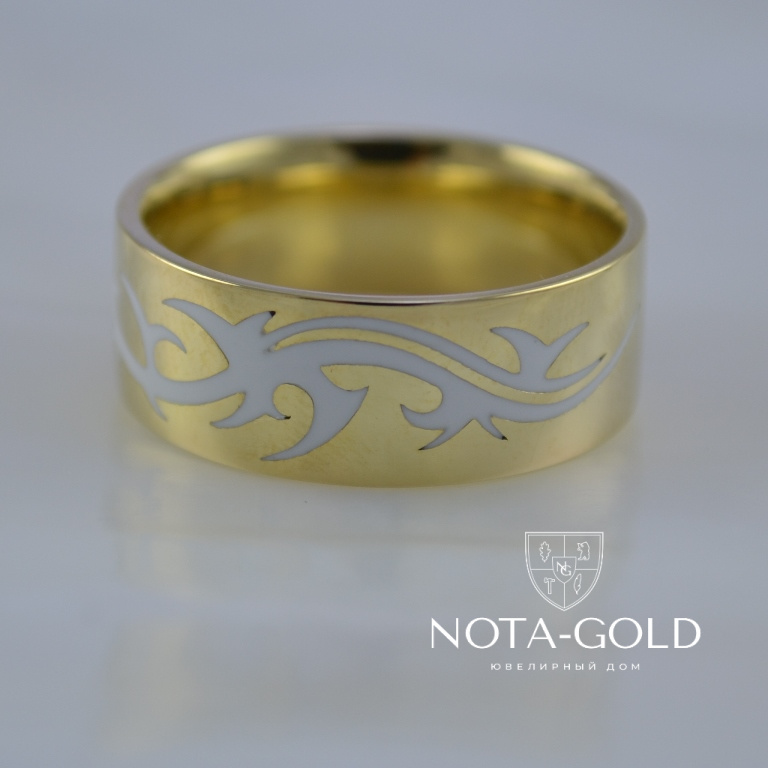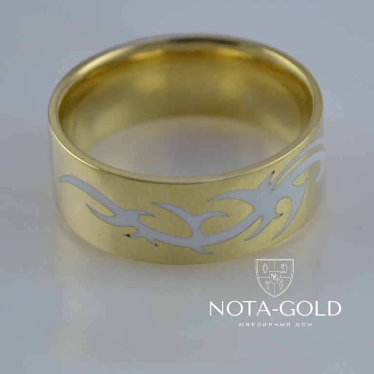 Кольцо из жёлтого золота с белой эмалью (Вес: 8 гр.)