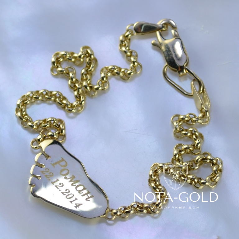 Браслет с ножкой младенца в подарок на выписку из роддома (Вес 4,6 гр.)