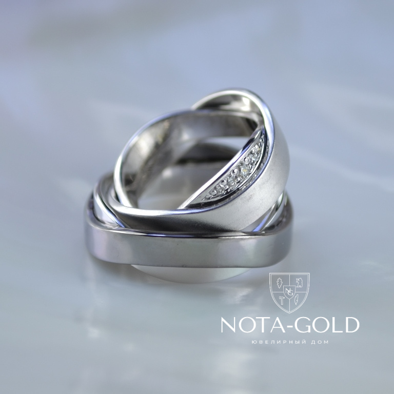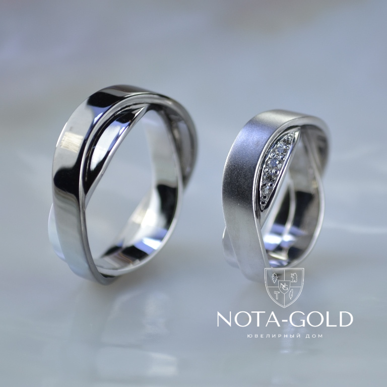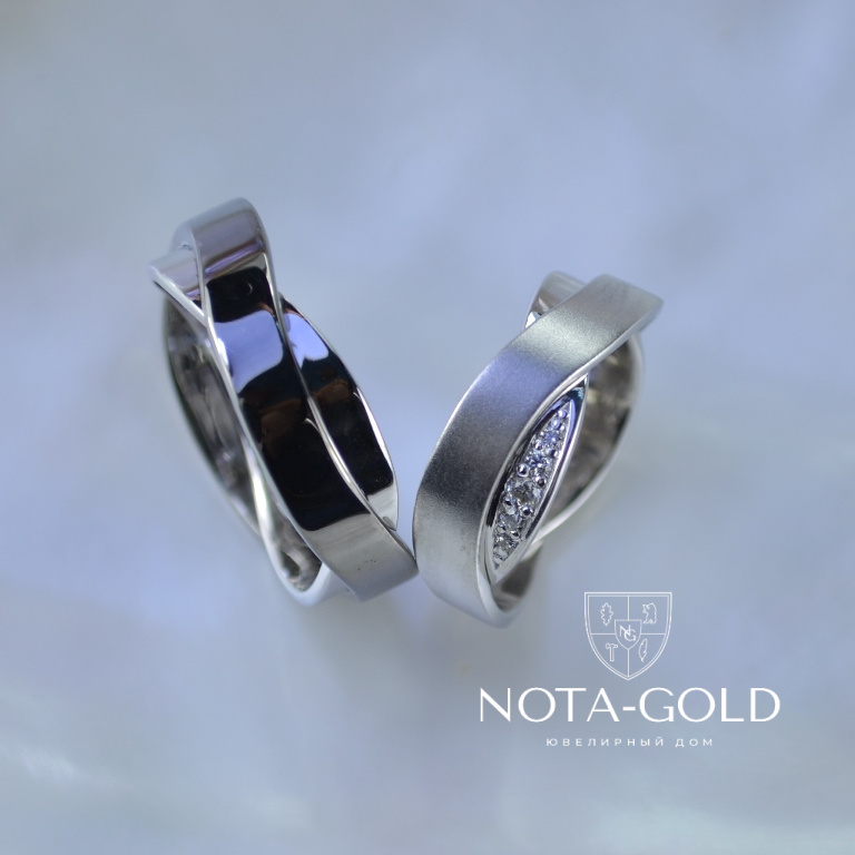 Обручальные кольца из чёрного и белого матового золота с бриллиантами (Вес пары: 14 гр.)