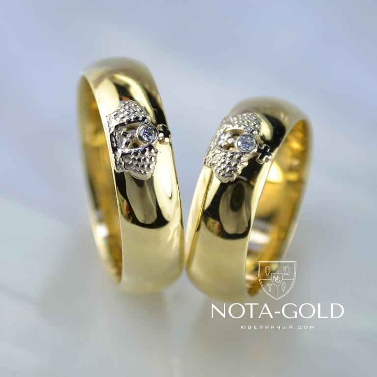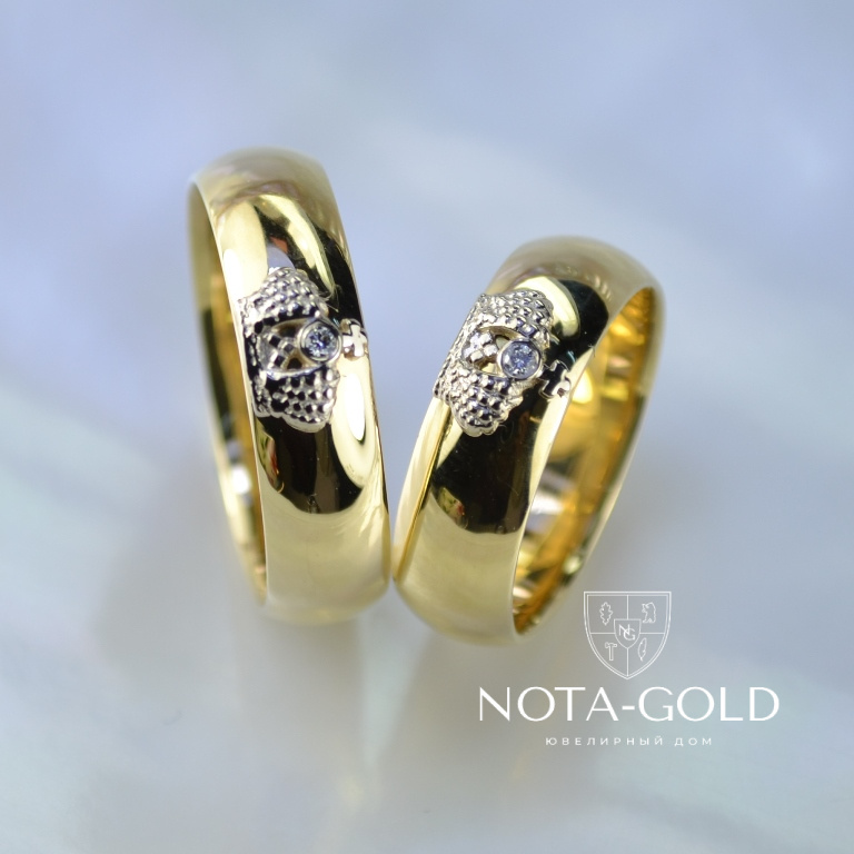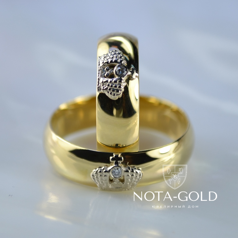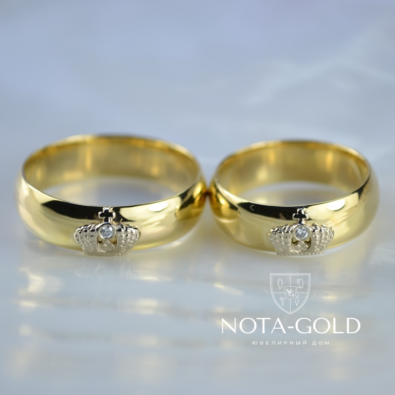 Классические обручальные кольца с короной и бриллиантами (Вес пары: 13,5 гр.)