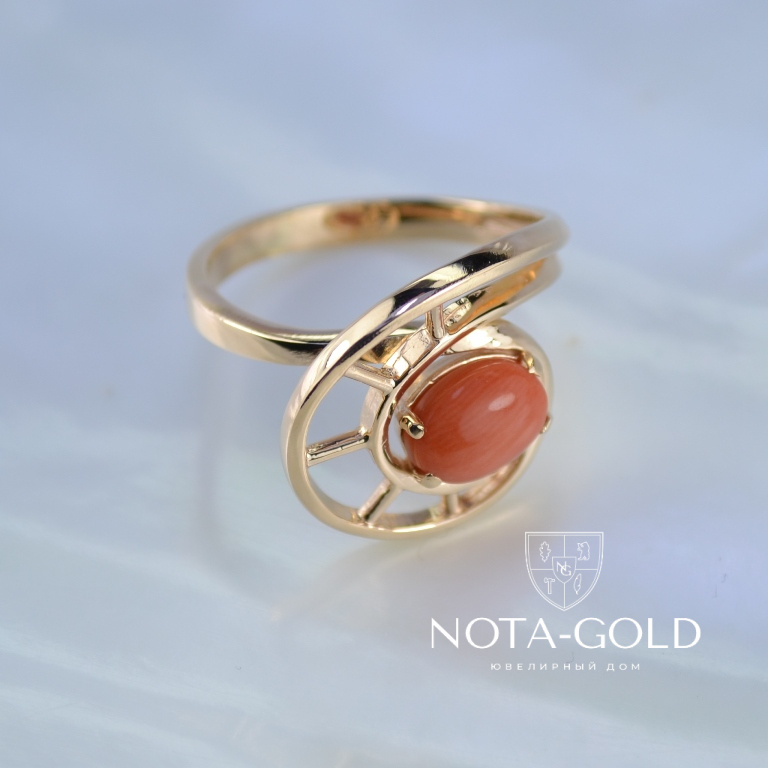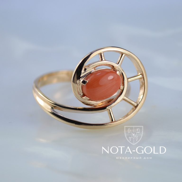 Кольцо с кораллом из красного золота (Вес: 5 гр.)