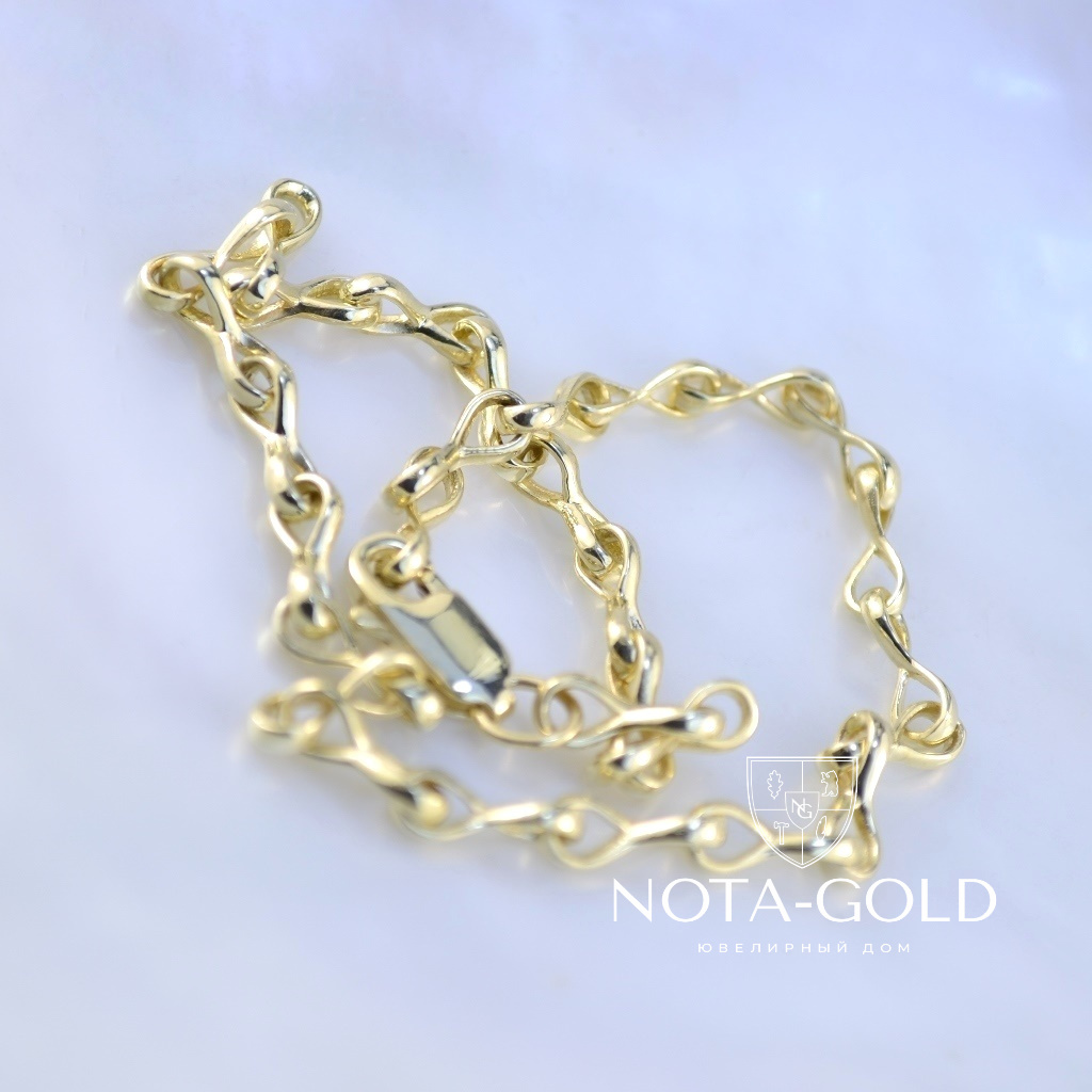 Браслет плетение Бесконечность может быть изготовлен из золота / серебра Мастерской или из золота /серебра Заказчика. Браслет данного плетения может быть изготовлен любого веса (не менее минимально указанного для определённой длинны)