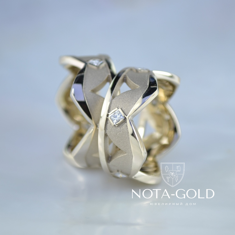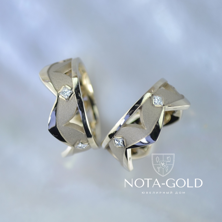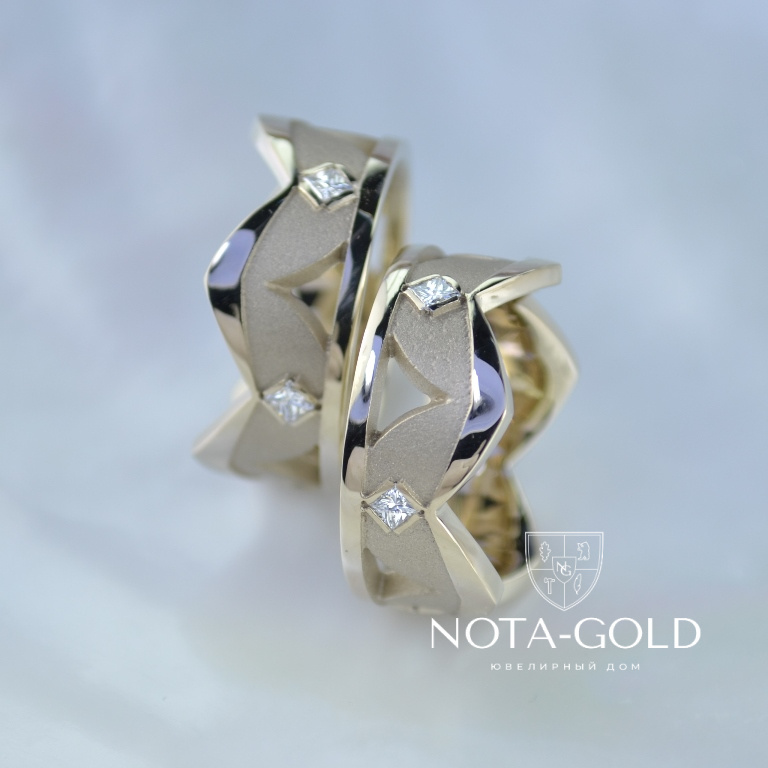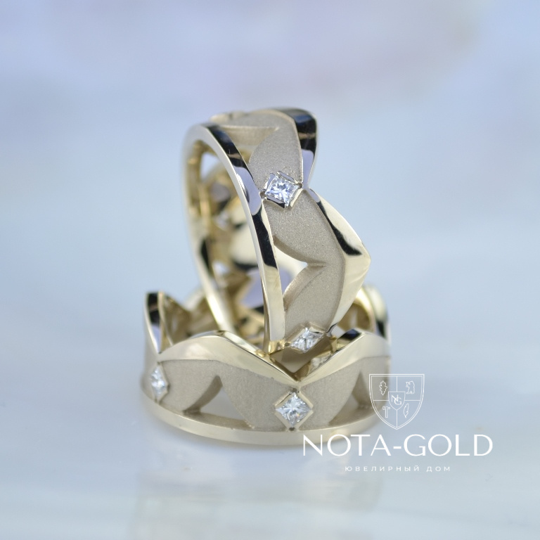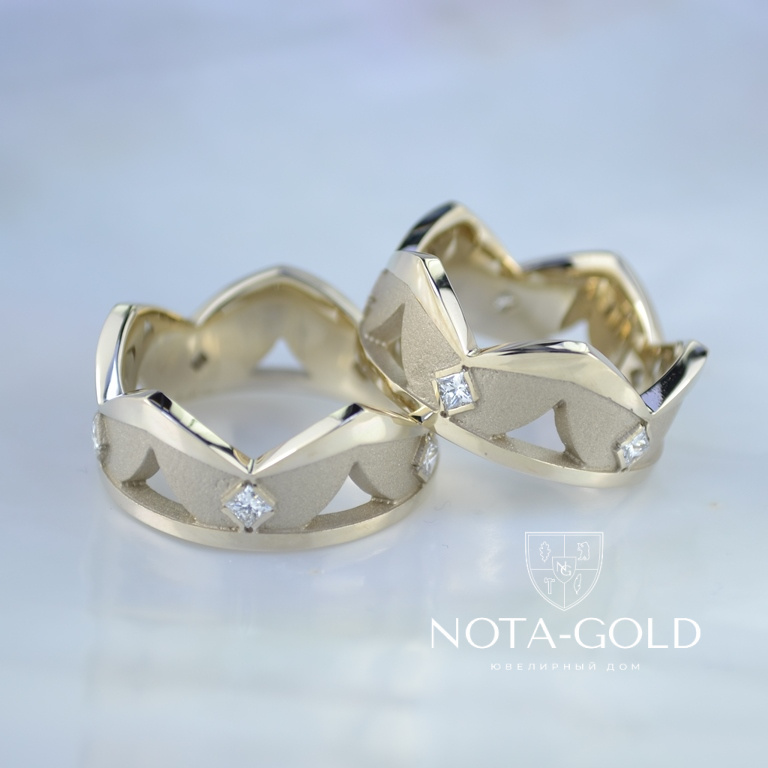 Обручальные кольца короны с квадратными бриллиантами (Вес пары: 19 гр.)