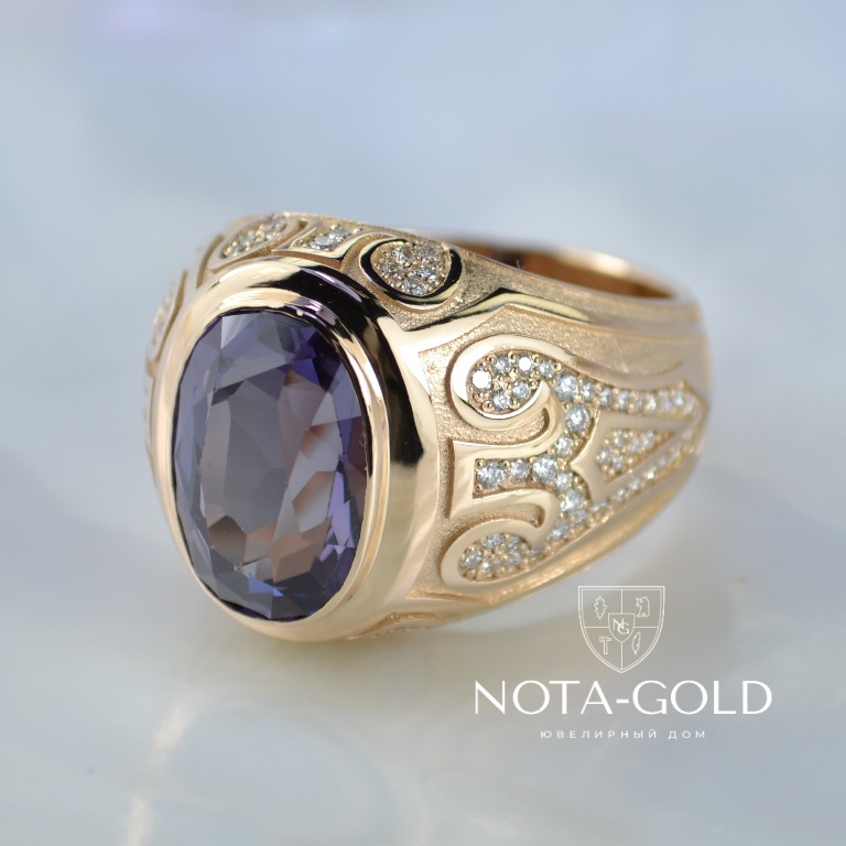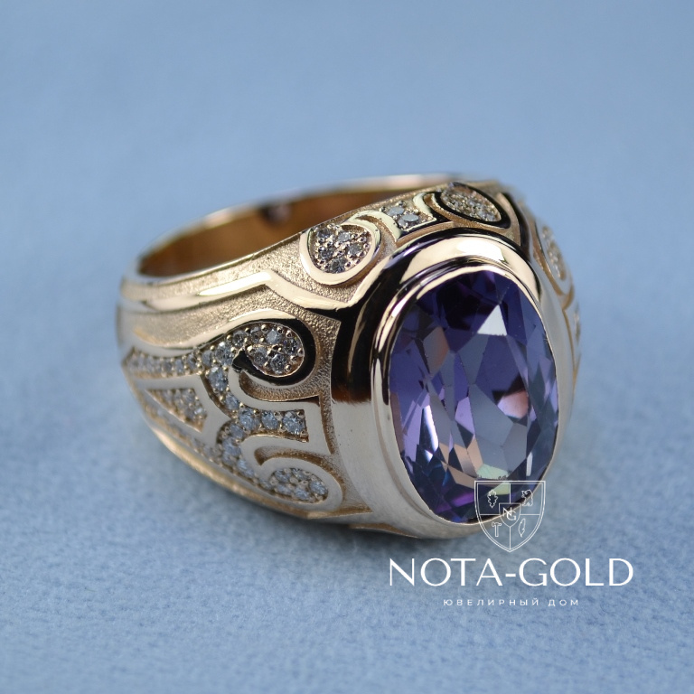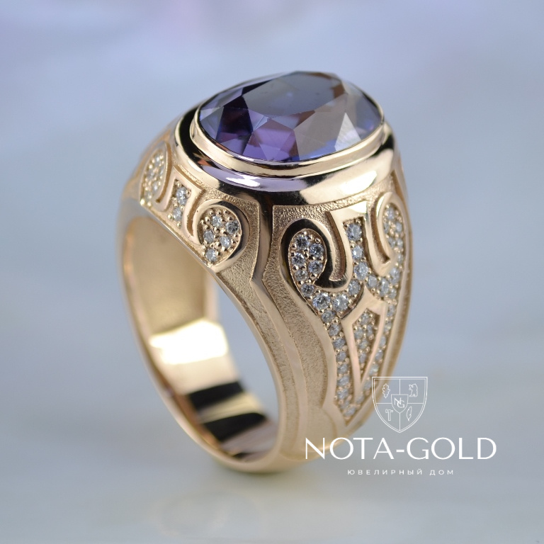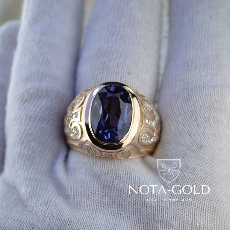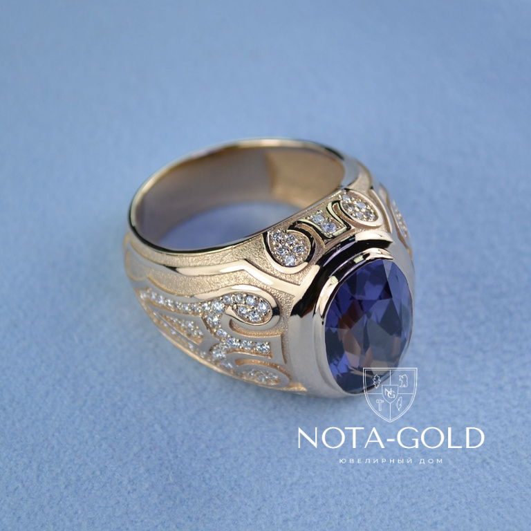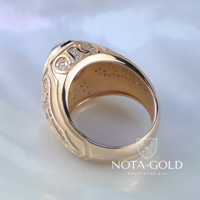 Эксклюзивный мужской перстень из золота с сапфиром и бриллиантами (Вес: 22 гр.)