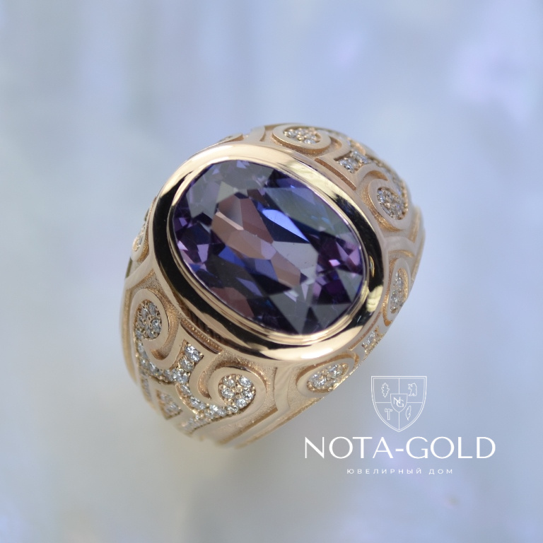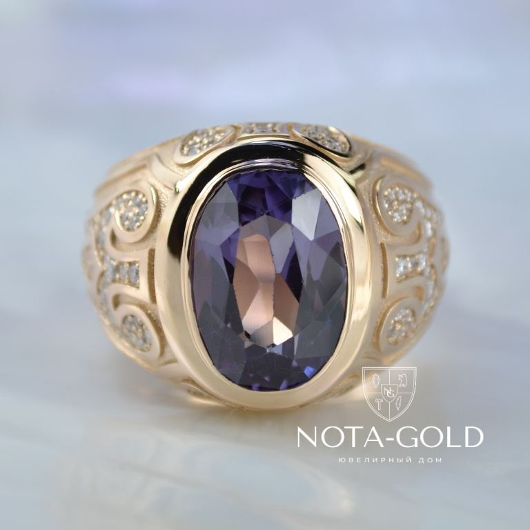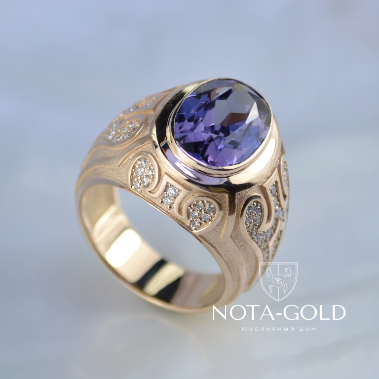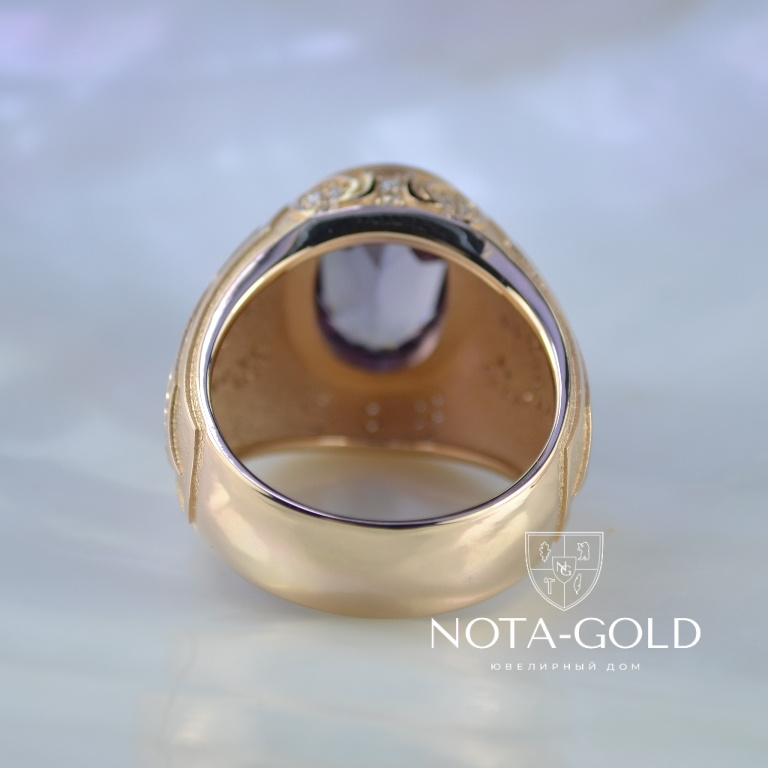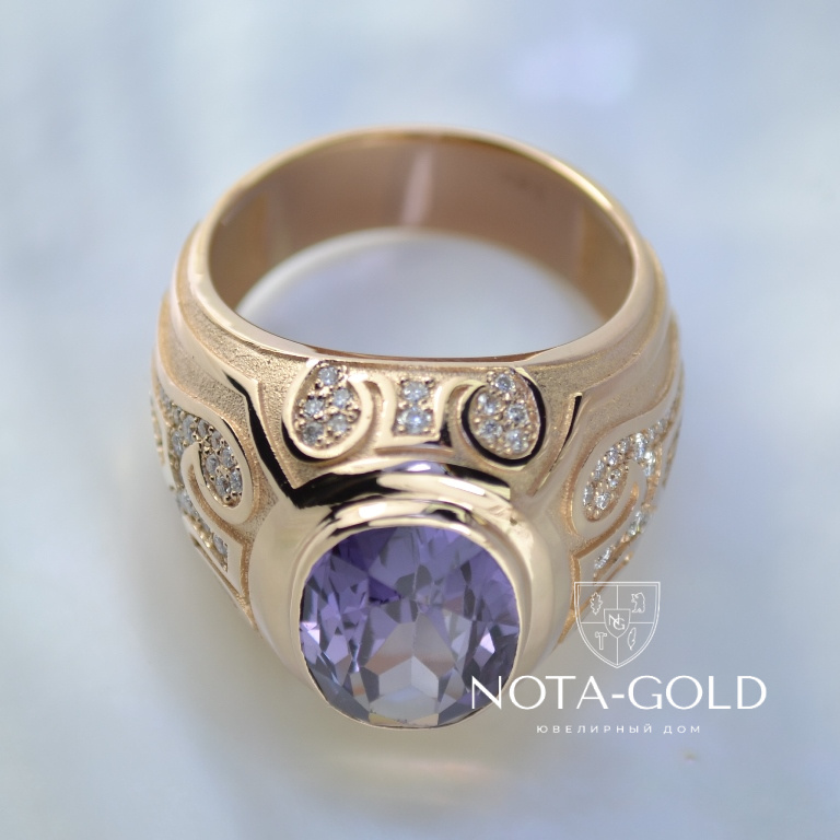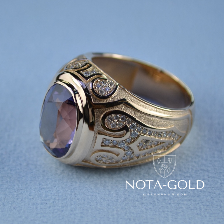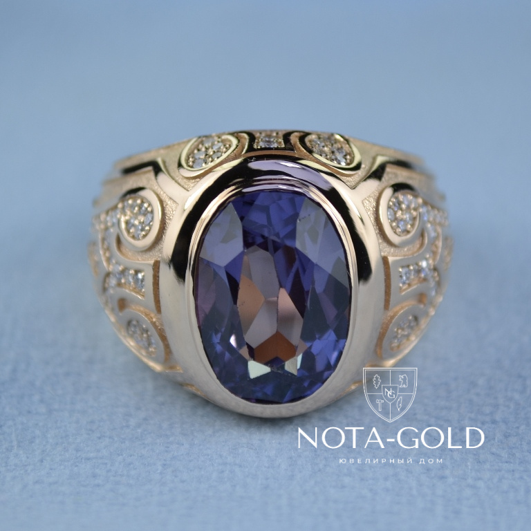 Эксклюзивный мужской перстень из золота с сапфиром и бриллиантами (Вес: 22 гр.)