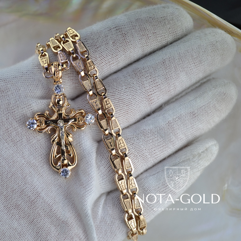 Мужской крест с бриллиантами на цепочке плетения Православное без замочка (Вес: 47 гр.)