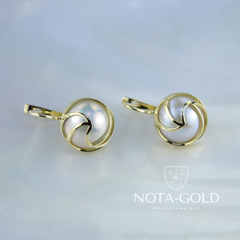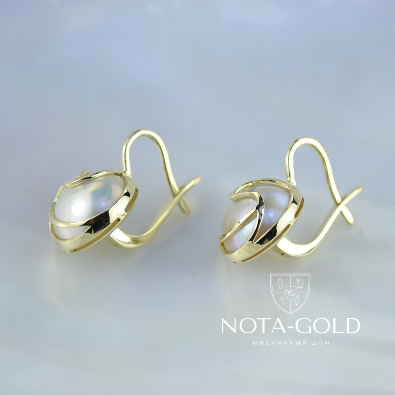 Серьги с жемчугом из жёлтого золота на английском замке (Вес: 5 гр.)