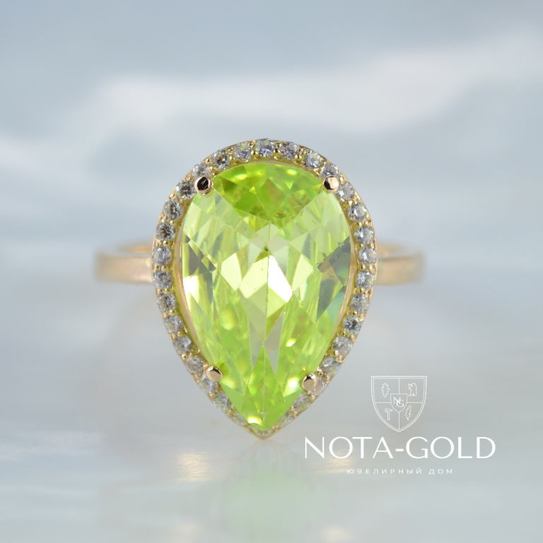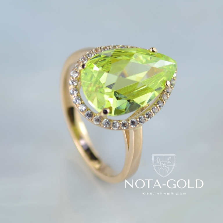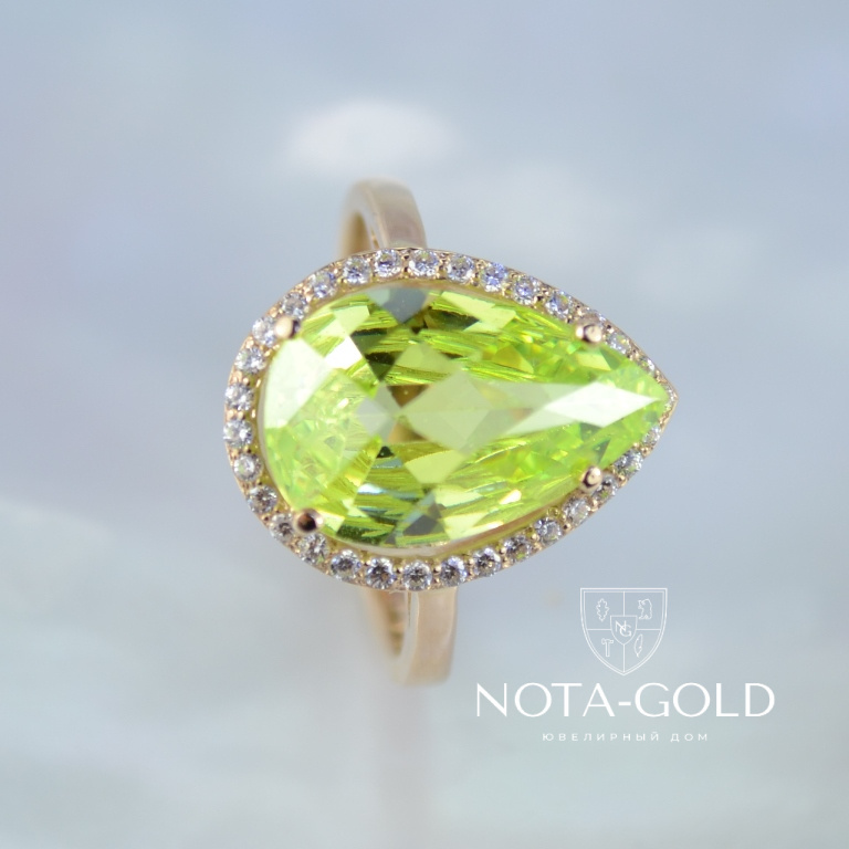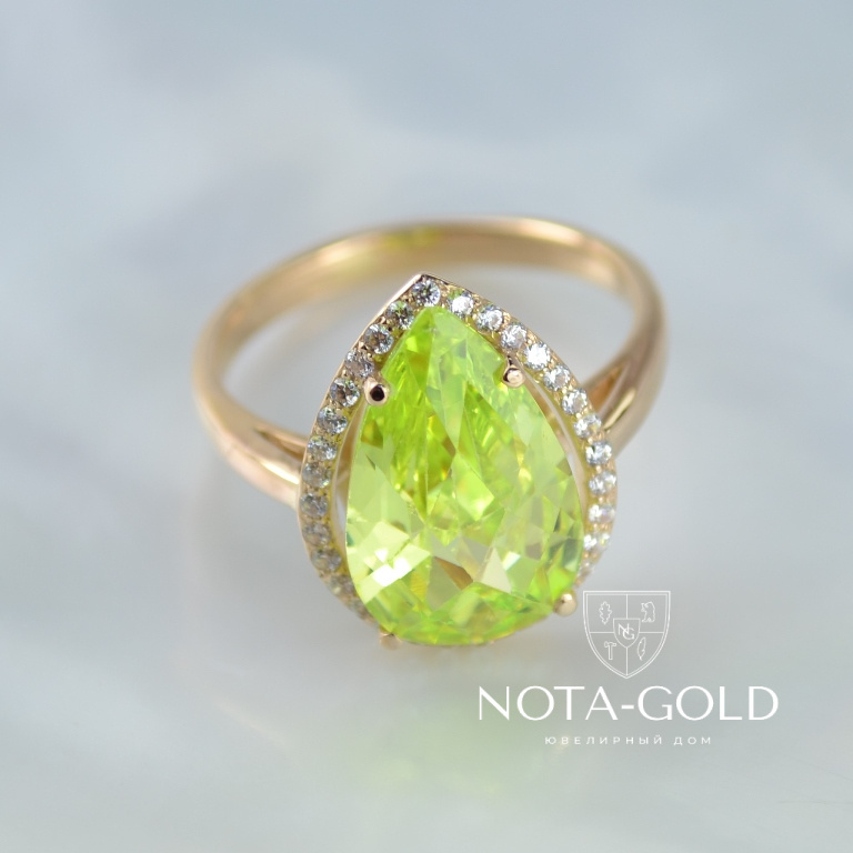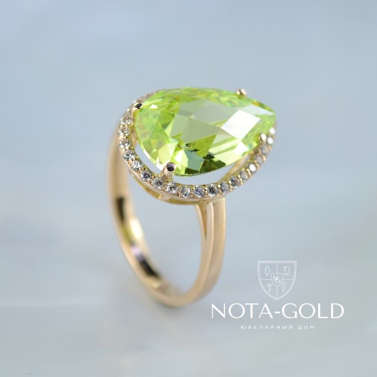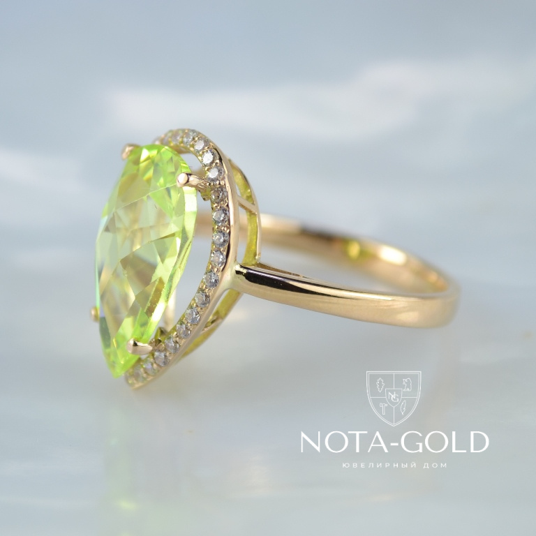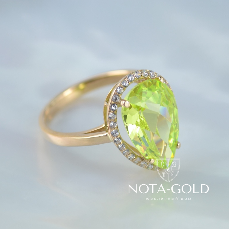 Кольцо с цветным камнем и бриллиантами (Вес: 4 гр.)