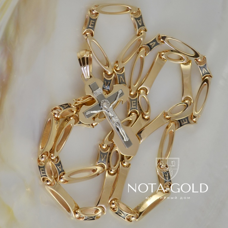Золотая цепочка с крестиком из красного золота с чернением (Вес: 56 гр.)